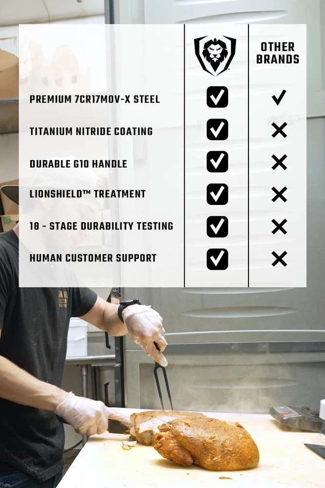 Professional 8.5" Barbecue Carving Fork - Shadow Black Series & NSF Certified ‹ › ‹ › ‹ › ‹ › ‹ › ‹ › ‹ › ‹ › ‹ › ‹ › ‹ › Professional 8.5" Barbecue Carving Fork - Shadow Black Series Introducing the Shadow Black Series - where elegance meets performance. Designed for those who appreciate the art of culinary excellence, this barbecue carving fork is not just a tool, but a statement of your passion for cooking. Features: Sleek & Muscular Design: With a scalpel-like edge, hand-finished to a precise 15° per side using the Honbazuke method. High-Performance Materials: Crafted from high-carbon 7CR17MOV-X super-steel with a vacuum heat treatment for extraordinary performance and edge retention. Titanium Nitride Coating: Non-reflective, robust, corrosion-resistant, and enhances non-stick properties. Ergonomic Handle: Midnight black fiber-resin and military-grade G10 handle is resistant to heat, cold, and moisture, ensuring a firm and comfortable grip. Offset Handle Design: Providing knuckle clearance for maximum safety and comfort during use. NSF Certified: Meets the standards for safety and sanitation, making it a trustworthy addition to your kitchen. Benefits: Experience unparalleled precision in slicing and carving your favorite meats. Enjoy a comfortable grip that allows for fatigue-free carving, no matter how long your culinary creations take. Easy to clean with soap and water, designed for quick maintenance so you spend more time enjoying meals. Each blade comes with a matching black space-saving sheath for protection at home and on the go. Watch the comprehensive unboxing video that showcases the fork’s features, usage, and setup. Why Choose the Shadow Black 8.5" Barbecue Carving Fork? Designed for the discerning chef, this barbecue carving fork invites you to elevate your culinary experience. Whether you are preparing a feast for friends, hosting a family gathering, or honing your skills, this fork is the versatile tool you need to achieve perfection in every slice. Don’t just cook; dominate the grill. Make your mark as a culinary artist with the Shadow Black 8.5” Barbecue Carving Fork—order yours today and embrace the art of cooking like never before! Shipping Free & Fast Shipping - We offer free shipping to most of the USA with a normal delivery time of 3-7 days. However, due to the current situation, additional delivery time (up to 3 weeks) may be required for some items. Alternative Carriers - We may use alternative carriers (e.g. USPS, FedEx, UPS, etc.) to ensure your package arrives safely and on time. Due to the use of multiple carriers, we are unable to provide a tracking number automatically. Handling Time - Orders are processed and shipped within 1-2 business days of receiving cleared payment. Shipping Restrictions - Shipping to Alaska, Hawaii, Puerto Rico, Guam, and other US territories may incur shipping charges or delivery restrictions. Please contact us before ordering, or your order can be refunded/cancelled. State Restrictions - There may be restrictions based on your state of purchase. For example, certain items may not be shipped to California due to state regulations. Contact for Tracking Updates - If you require tracking updates or have any concerns about the delivery of your order, please feel free to contact us, and we will be happy to assist you. Return 30-Day Hassle-Free Returns - We want you to be completely satisfied with your purchase. If you are not, you can return the item within 30 days of receiving it for a full refund or exchange. Easy Return Process - To start a return, simply contact us and we will provide you with a prepaid return shipping label and detailed instructions. Restocking Fee - There are no restocking fees for returns. However, the buyer is responsible for return shipping costs if the return is not due to a seller's error. Refund Processing Time - Refunds will be processed within 5 business days of receiving the returned item in its original condition. Payment We accept all major credit cards, PayPal, and Apple Pay for your convenience. Your payment information is secure and encrypted to ensure a safe and seamless transaction. Please complete your payment within 3 days of purchase to avoid any delays in shipping. Feedback Your feedback is extremely important to us. We strive to provide the best products and customer service possible. If you are satisfied with your purchase, please take a moment to leave us a positive review. If you have any concerns or issues with your order, please contact us before leaving negative feedback. We are committed to resolving any problems and ensuring your satisfaction. Contact Us If you have any questions or concerns, please feel free to reach out to our customer support team. You can contact us through the eBay messaging system. We are available Monday to Friday, 9:00 am to 5:00 pm EST, and we will do our best to respond to your inquiry within 24 hours. Buy it now and enjoy a pleasant shopping experience! UPC: Not Set Unit Quantity: 8.5 inch Material: Steel,High Carbon 7CR17MOV-X Steel,Titanium Nitride,Fiber-resin,G10 Set Includes: Not Set Department: Adults Character: Not Set Features: Dishwasher Safe,NSF Certified,Non-reflective Coating,Robustness,Corrosion Resistance,Non-stick Properties Type: Meat Fork Brand: Unbranded Handle Material: G10 Country/Region of Manufacture: Not Set Color: Black Finish: Not Set Style: Sleek Handle Pattern: Not Set MPN: Not Set Occasion: Not Set Character Family: Not Set Wood Tone: Not Set Item Length: Not Set Care Instructions: Easy to Care For Model: Not Set Item Weight: Not Set Manufacturer Warranty: Not Set Unit Type: Not Set
