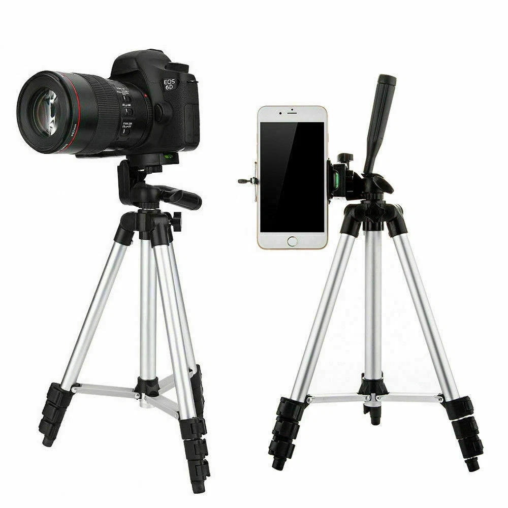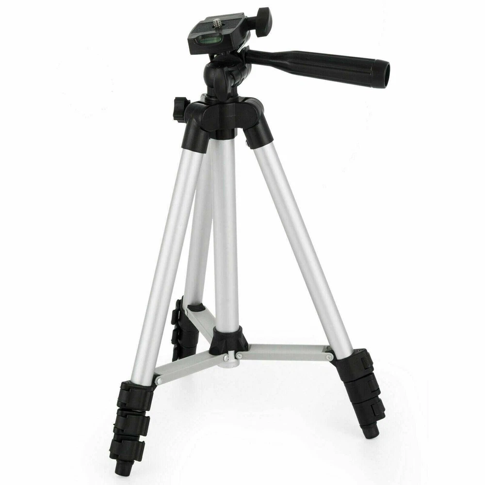 Features: -Portable and flexible, ideal for outdoor, travel, and timer shoots. -Built-in bubble level, making your tripod perfectly leveled. -Convenient grip handle moves the head at different angles. -Compatible with all kinds of smartphones. -360-degree horizontal and 90-degree vertical swivel with 3-way head. -With grip for adjusting head position. -Solid Safety 4 Section Aluminum Legs with non-slip rubber feet. -The tripod is lightweight and mobile with its aluminum alloy legs. -Lightweight and compact, easy to install and operate. Specification: Product type: Tripod Stand. Color: Silver&Black Material: Aluminum. Screw Size: 1/4" Maximum Load: 5.5lb. Maximum Height: 3.77ft/46 inches. Folded Length: 1.13ft/14 inches. Head Type: 360-degree Swivel Fluid Head. Leg Lock Type: Self-aligning metal quick-flip leg locks. Weight: 15.1 oz Package Included: 1 x Tripod Stand. 1 x Universal Holder for Tripod. 1 x Nylon Carry Bag
