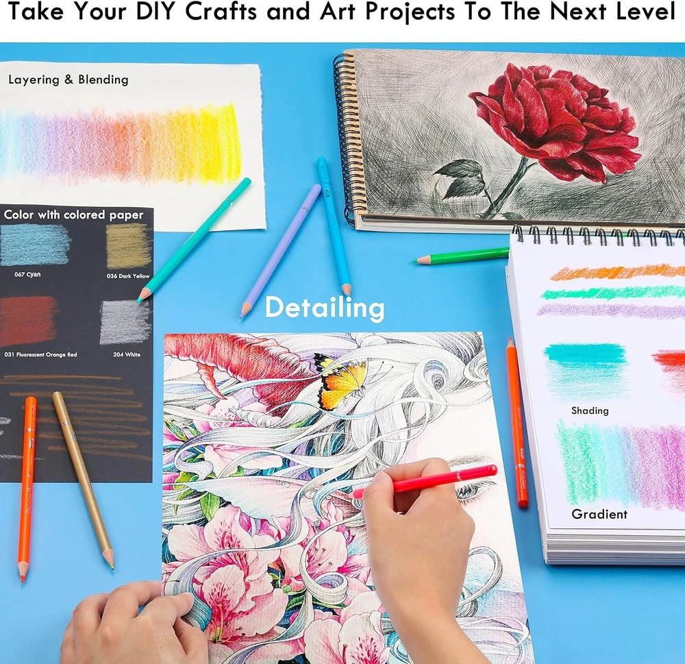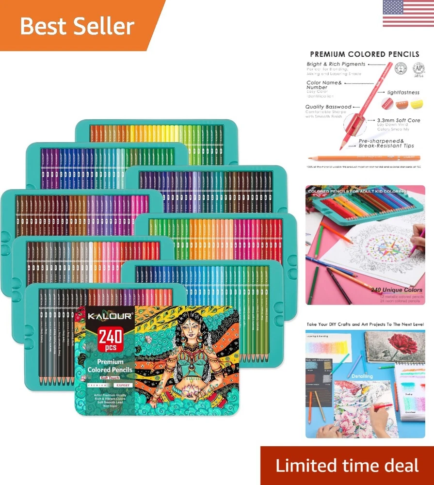 Professional Colored Pencils,Set of 240 Colors,Artists Soft Core with Vibrant Color,Ideal for Drawing Sketching Shading,Coloring Pencils for Adults Artists Beginners 240 Color Pencil Set : set of 240 colored pencils contains 240 different color,You can find any color you need in these to enrich your coloring book.Perfect set for Artists adults beginners. Vivid,Vibrant Color : Each pencil inside is equipped with high quality silky smooth,velvety soft pencil leads lay down lots of vivid color,the colored core are highly pigmented, Perfect for coloring & drawing break-resistant cores produce incredible tone, perfect for blending and layering multiple colors. Numbered&Named : Each pencil body has a unique number and color name for easy color pencil is made of high-quality basswood, which is very easy to sharpen. Conforms to ASTM D-4236 & safe. Color Art : Colors always cheer people up, stimulate their creativity and imagination. People color in their leisure time for stress-releasing, abundant colors brighten your works and life, and bring coloring much fun. Portable Case : 100% safe & assorted colored pencils are placed in a beautiful tin box, and the plastic built-in tray to keep pencils organized and problems? Let us know & we'll send a free . Turn your sketches into professional masterpieces insists on providing you with the best art tools. Our cost-effective products provide the possibility for everyone who ns for art. Whether you are a beginner or an artist, can meet the your artistic career with . 240 Unique Vibrant Colors Illuminate Your Life Blend & Layer Like a Pro The long-lasting pencils are pre-sharpened so you can start drawing as soon as you open the beautiful color to your coloring book and artwork instantly. Wax-based soft core with rich pigments Break-resistant Lay down smoothly,ideal for blending and shading Numbered,named,great for adult coloring 100% safe & nontoxic