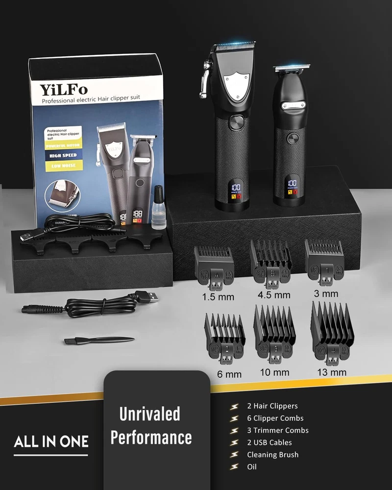 Hair Clippers for Men Professional- Beard Hair Trimmer, Cordless Barber Clippers Kit, LED Display Hair Cutting Kit, T Liners Edgers Clippers and Trimmers Grooming Set, Shaving Kit for Mens Gift All in One Hair Clipper Grooming Kit: Two hair clippers, two USB charging cable, two dust proof guide combs, three regular guide combs (1/2/3 mm), six replaceable guide combs (1.5/3.0/4.5/6.0/10/13 mm), oil, English manual, cleaning brush. With this hair clipper set comes multiple accessories, the working is simple and easy to use. Hairstye design for the whole family can be done easily with one machine Large LED, USB Charge: Still worried giving up halfway for your self cut? Not more worries from haircut kit with LED display, show the remaining power/charging reminder/oiling prompts. Still struggling with a corded restricted haircut? wireless hair clippers with USB 2.5 hours fast charging for 150 minutes wireless running, and completely relieve your battery anxiety! The USB charge interface is compatible with various devices as computers. Worldwide universal voltage for travel Upgrade Blades Equipped Powerful Motor: Double layer steel blades, smooth and not stuck. Clipper and trimmer set with many different lengths combs(the number represents the reserved hair length), even beginners can easily learn to cut hair no excessive trimming or uneven layers. You can freely choose the length of hair. Strong power, up to 7000 rpm, stable performance, and cut hair machine for men can easy to complete satisfactory shape. Keep clippers dry as this will make the blades last longer Professional Salon Barber Clippers Sets: Professional maquinas para cortar cabello with complete accessories, suitable for hair stylists, hairdressing students, image designers, hairdressing knowledge lovers. As a barber, if you can combine your skills combined with this hair and barber kit, your haircutting work will be more comfortable and your haircutting business will flourish Sets for Him, After Sales: Matching maquina para cortar pelo packed in exquisite packaging boxes. On special occasions such as Anniversaries, Birthdays, Father's Day, Christmas, etc as a set to your loved ones, boyfriend, husband, dad, why not? team launches quality products and provides timely service. If you have any questions about this two piece set cordless clippers for men, please contact us in time. Our Team will reply to you as soon as possible Shipping We offer FREE shipping on all orders! We ship within Three business days of payment, usually sooner. We use a selection of shipping services such as UPS, FedEx, USPS etc. We only ship to the lower 48 states, no APO/FPO addresses or PO Boxes allowed. Local pickups and combined shipping options are not provided at this time. Return You can return a product for up to 30 days from the date you purchased it. Any product you return must be in the same condition you received it and in the original packaging. Please keep the receipt. Payment We accept payment by any of the following methods: PayPal Please pay as soon as possible after winning an auction, as that will allow us to post your item to you sooner! Feedback Customer satisfaction is very important to us. If you have any problem with your order, please contact us and we will do our best to make you satisfied. Contact Us If you have any queries, please contact us via ebay. We usually respond within 24 hours on weekdays. Please visit our eBay store to check out other items for sale! Thank you for shopping at our store.