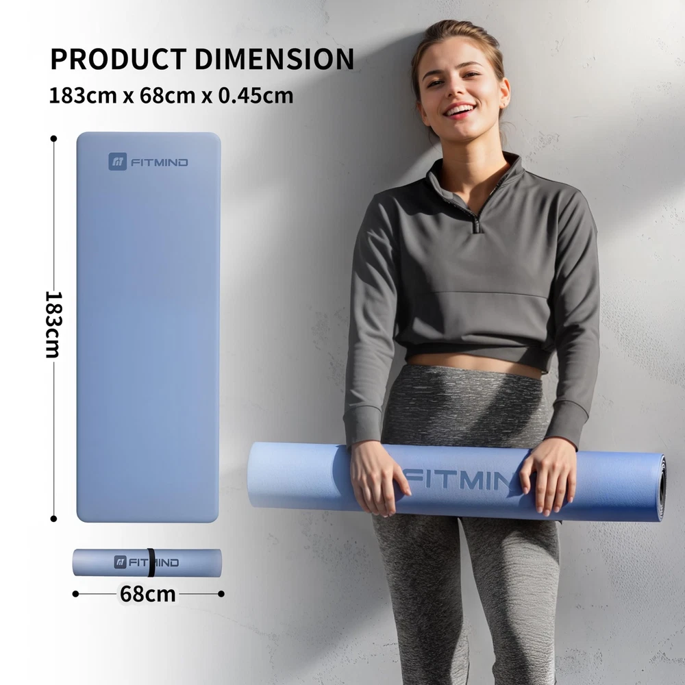 Professional PU Rubber Yoga Mat, Double-Sided Non Slip Sweat Resistant Exercise Mat for Men Women, Comfortable Extra Long & Wide for Yoga, Pilates, Fitness, Home Gym, 72"×26.8"×0.18"(4.5mm)Thick 【Double-sided Non-slip】- Non-slip yoga mat is made of premium rubber and has a texture for excellent grip and stability. Designed professionally for yoga, Pilates, hot yoga, etc . 【Quick Sweat Absorption】- Rubber yoga Mat for men women can quickly absorb sweat, effectively keeping the surface dry, avoid being affected by sweat during exercise. 【Flat Edges】- Fitness mat is 6.17LB, avoiding edge curling, ensuring flatness onto the floor during workout. 【Large Size】- Exercise mat is 72"*26.8", Longer and wider than regular yoga mats,0.18"(4.5mm) thick provide excellent shock absorption for joint protection, ensuring comfort for various yoga pilates poses. 【Durable & Easy to transport】- Gym mat is designed to resist wear and tear, ensuring long-lasting durability. Our yoga mat comes with a strap, making it easy for storage and transport to anywhere. NOTE: natural rubber has an odor, but please rest assured that it is 100% non-toxic and the odor will gradually disappear after some time.