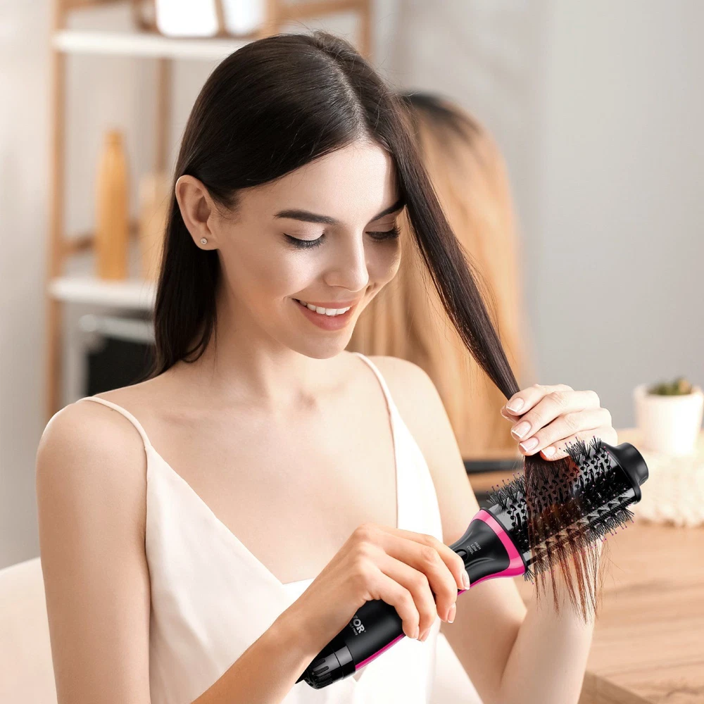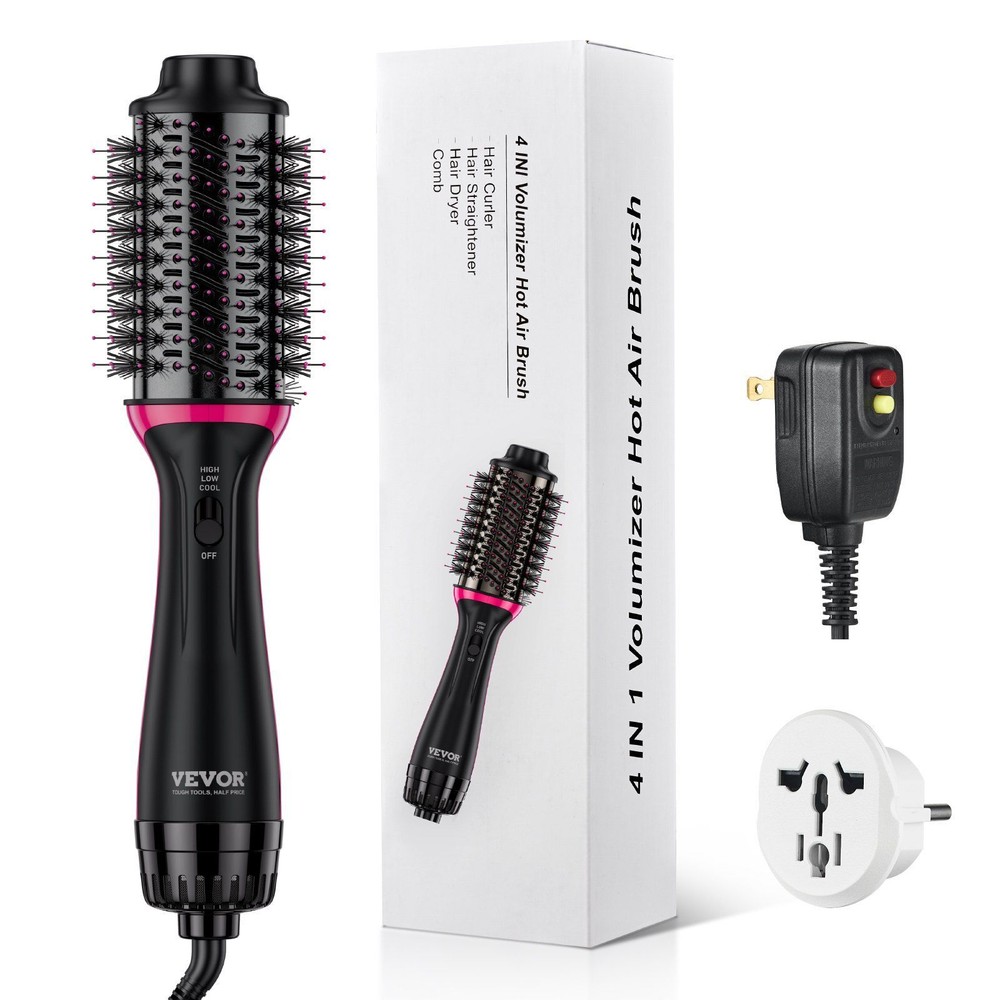 Dual Voltage - Travel the World in Style Experience the ultimate styling solution with VEVOR 4-in-1 hair dryer brush, featuring dual voltage compatibility for global use. With innovative electroplated titanium tech, 30W+ negative ions, and ceramic coating, this brush ensures even heat distribution while protecting your hair from damage. No matter where you are, the VEVOR blow dryer brush meets all your styling needs. It supports both 110-120V and 200-240V voltages, making it easy to style your hair while traveling. Whether at home or abroad, showcase your beauty and let your radiance accompany you on every journey! In addition to 30W+ negative ions and ceramic coating, VEVOR hot air styling brush also utilizes innovative electroplated titanium heat conduction tech, ensuring more even heating and reducing localized overheating. No heat damage, revealing beautifully healthy and radiant hair! Enjoy smooth hairstyles effortlessly with our 360° surround airflow, which delivers uniform heat to reduce frizz. The 2.56-inch (65mm) oval brush features nylon pins and tufted bristles to prevent hair tangle, and the ALCI safety plug offers added peace of mind. Experience fast drying and effortless styling with the VEVOR 4 in 1 hair dryer and styler volumizer. Whether you want sleek, straight locks, beautiful curls, or a quick blow-dry, this multifunctional tool has you covered.