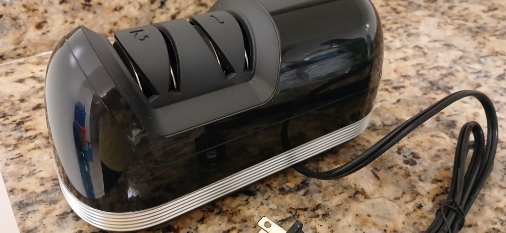1. This knife sharpener is a game-changer! It works fast and leaves my blades razor-sharp with minimal effort. The sturdy stainless steel build feels durable, and the sleek design looks great on my counter. Perfect for keeping all my kitchen knives in top condition—no more struggling with dull blades! Highly recommend for anyone who cooks regularly.