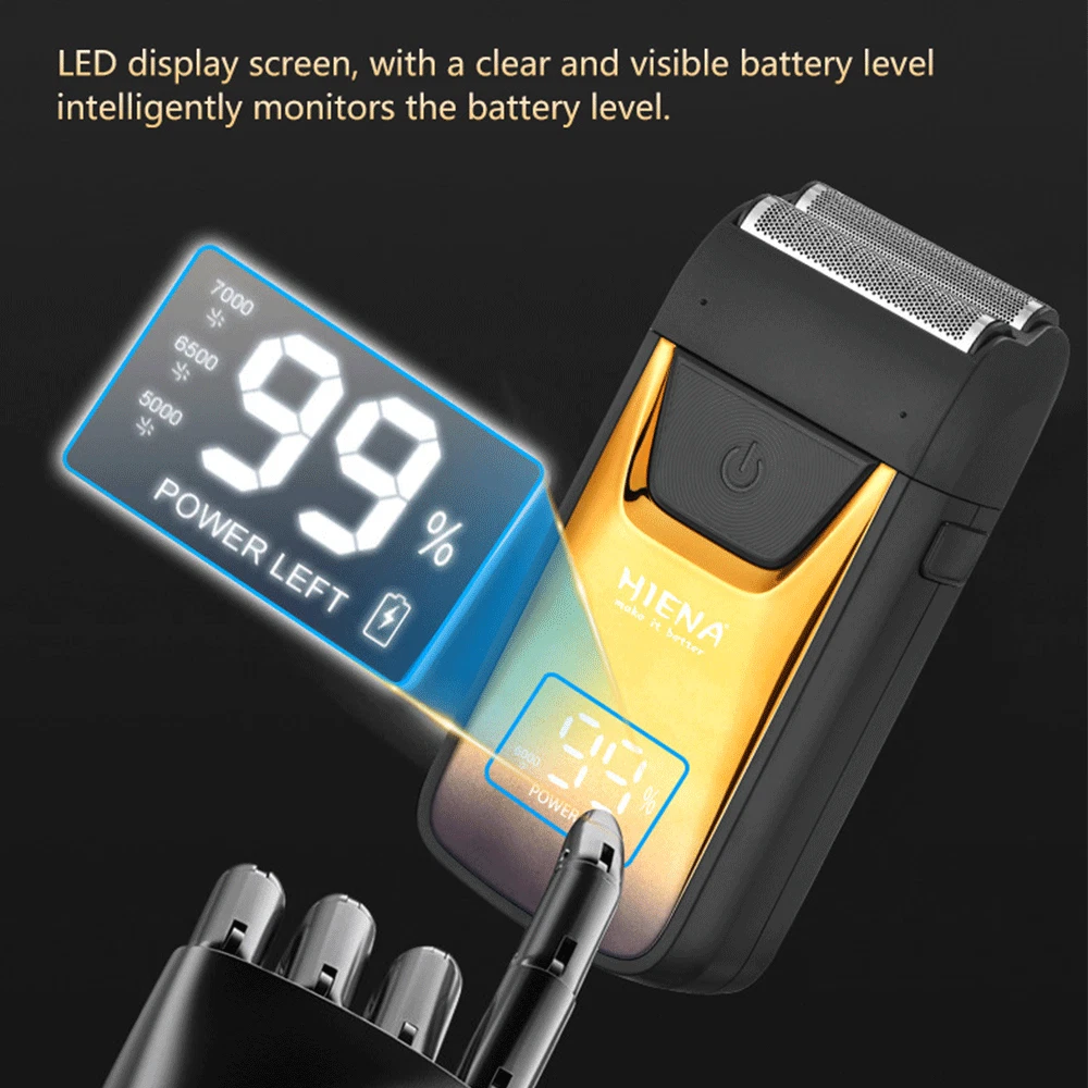 Head Type: Beard Trimmer Features: Adjustable Speed, Built-In Moisturizing System, Cleaning Indicator, Cleaning System, Cordless, Dual Voltage, Folding Blade, Hair Trimmer Option, LED Display, Low Battery Indicator, Pivoting Head, Quick Charging Time, Rechargeable, Replacement Blades, Smartlight, Swivel Cord, Travel Case, Travel Size, Washable, Waterproof, Wet/Dry Motor Type: Rotary Number of Heads: 1 Country/Region of Manufacture: China Power Source: USB Charging Body Area: Back, Body, Face Item Weight: 2 lb Color: Gold Item Length: 3 in Brand: Unbranded Department: Men Type: Shaver Kit