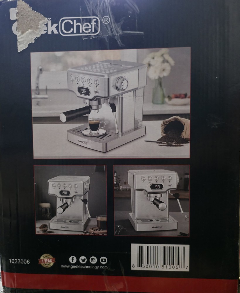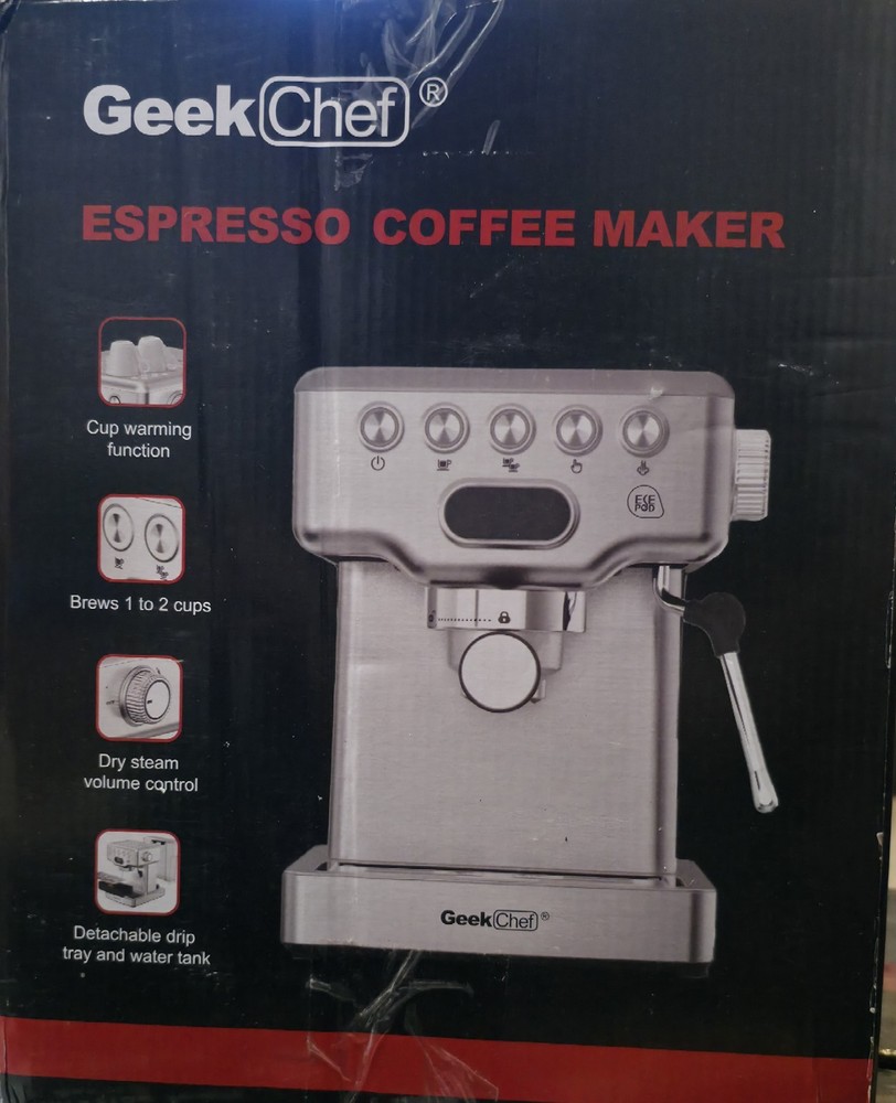 The Professional Espresso Machine by Geek Chef is a high-pressure 20 bar pump that quickly heats up in 25-45 seconds, making it ideal for coffee enthusiasts who enjoy espresso, macchiato, and cappuccinos. With a sleek stainless steel finish and a compact design, this machine is perfect for home use and includes convenient features like a steam wand, auto shut-off, and a built-in water filter. The machine is programmable, easy to clean, and comes with a 1-year manufacturer warranty, making it a reliable choice for those who appreciate a quality cup of coffee.
