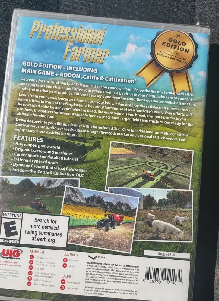 Region Code:NTSC-U/C (US/Canada)MPN:UI00746-01Platform:PCCustom Bundle:NoVideo Game Series:Professional Farmergtin13:819759021484UPC:819759021484Style:SOFTWARESub-Genre:HuntingGenre:FarmingBrand:UIEGame Name:Professional FarmerPublisher:UIG EntertainmentManufacturer Warranty:NoneFeatures:Gold EditionRelease Year:2019Country/Region of Manufacture:UnknownRating:E-Everyone