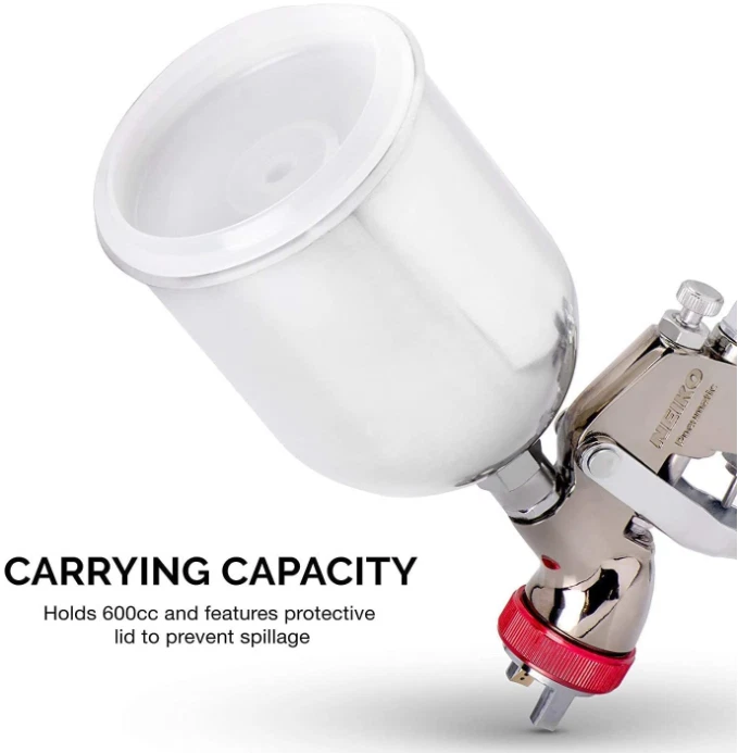 Pistola De Pintura HVLP Professional Automotriz Para Casas Autos 2.0mm,600CC NEW PULVERIZADOR DE PINTURA DE ALTA RESISTENCIA: Cada pistola pulverizadora consta de un cuerpo de acero de una sola pieza, una boquilla de acero inoxidable resistente a la corrosión y una tapa de latón macizo para una mayor durabilidad. ALTO VOLUMEN Y BAJA PRESIÓN HVLP: El diseño de suministro de fluido por gravedad alimenta suavemente la pistola pulverizadora y funciona junto con tres perillas de válvula ajustables para una aplicación precisa de la pintura. BOQUILLA DE 2.0 MM: La boquilla roja de 2.0 mm con código de color es perfecta para aplicar barniz y una variedad de proyectos de pintura automotriz y doméstica. DEPOSITO DE 600 CC: Cada depósito de aluminio de 600 cc (20.3 onzas líquidas) incluye tapa, y cada unidad de pulverización de pintura incluye un manómetro/regulador de aire metálico, un cepillo de limpieza y una llave multiusos para su montaje y desmontaje. ESPECIFICACIONES: La presión de funcionamiento de esta pistola de pintura neumática es de 40 PSI; la presión de trabajo es de 10 PSI; el consumo promedio de aire es de 4.5 CFM. SHIPPING: We offer FREE shipping on all orders! We ship within Three business days of payment, usually sooner. We use a selection of shipping services such as UPS, FedEx, USPS etc. We only ship to the lower 48 states, no APO/FPO addresses or PO Boxes allowed. Local pickups and combined shipping options are not provided at this time. FEEDBACK: Customer satisfaction is very important to us. If you have any problem with your order, please contact us and we will do our best to make you satisfied. Thank you for shopping with us!