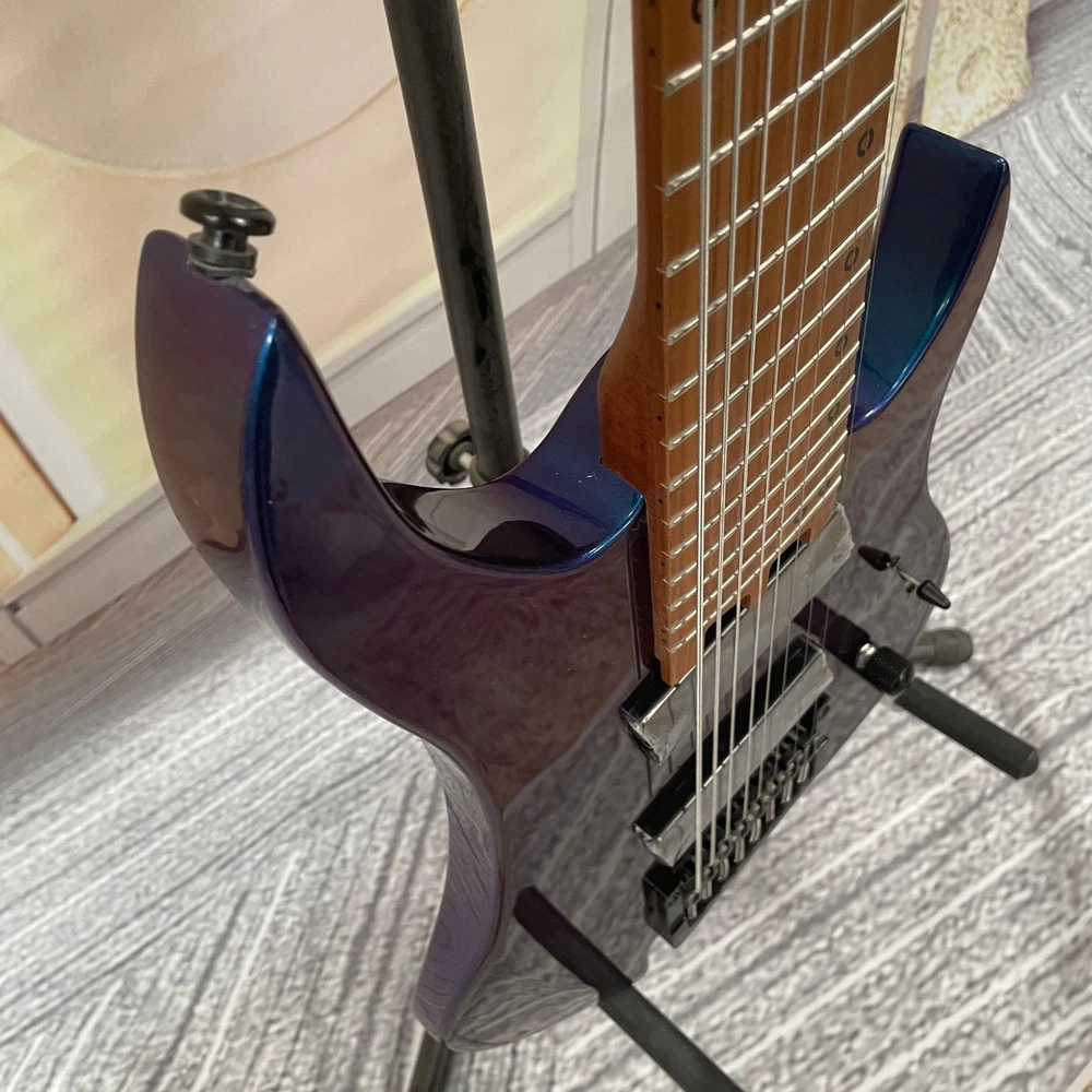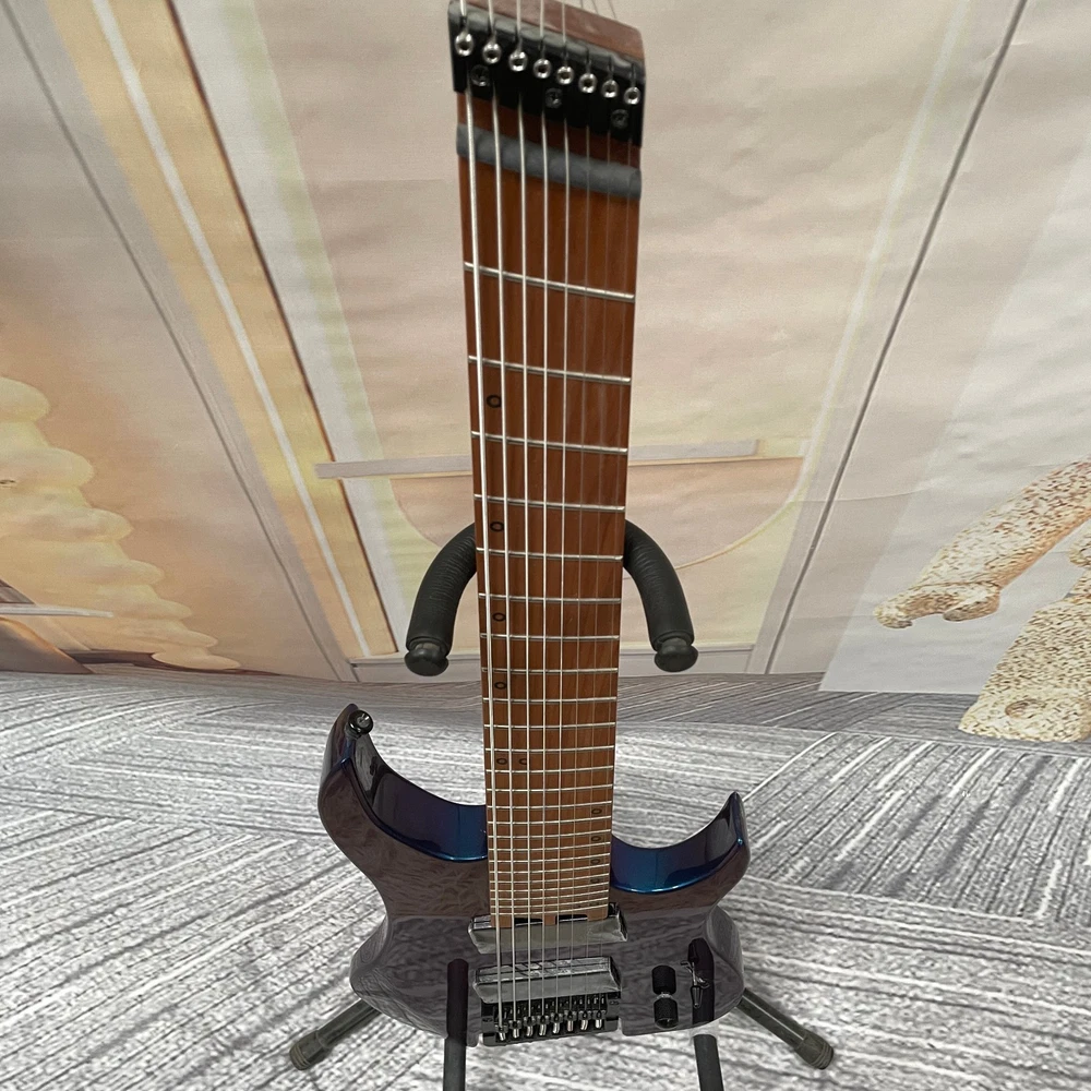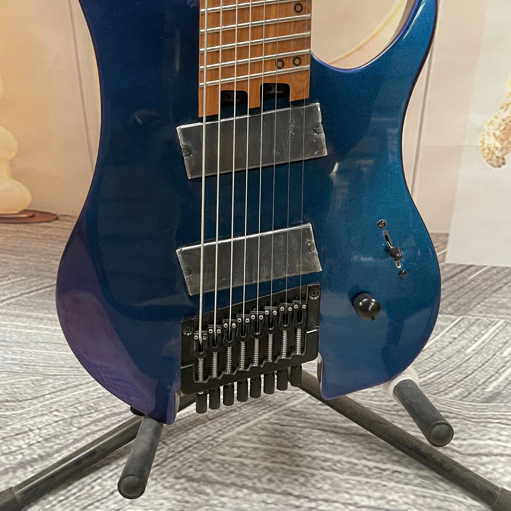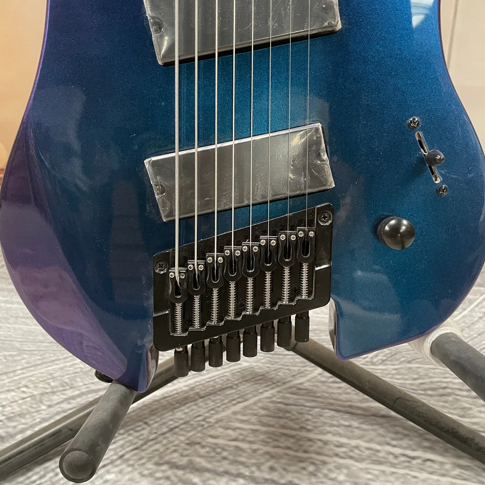 The Professional Headless 8-String Guitar in Deep Blue Gloss Finish is a high-quality electric guitar designed for professional musicians. With a solid body and 6mm frets, this guitar delivers excellent sound and performance. The deep blue color adds a stylish touch to the instrument, making it a standout choice for any musician. This guitar set includes a cable for easy connectivity and is right-handed, ideal for right-handed players looking to expand their musical capabilities with an 8-string guitar.
