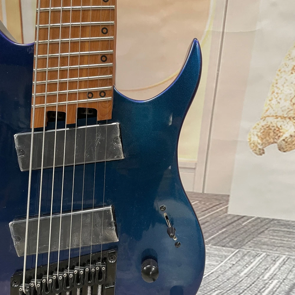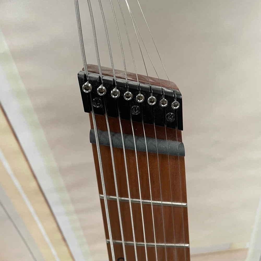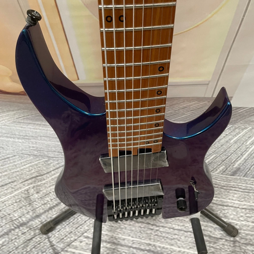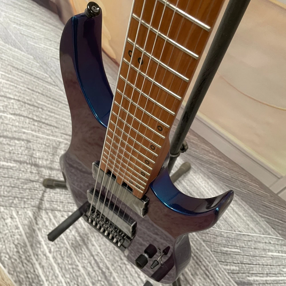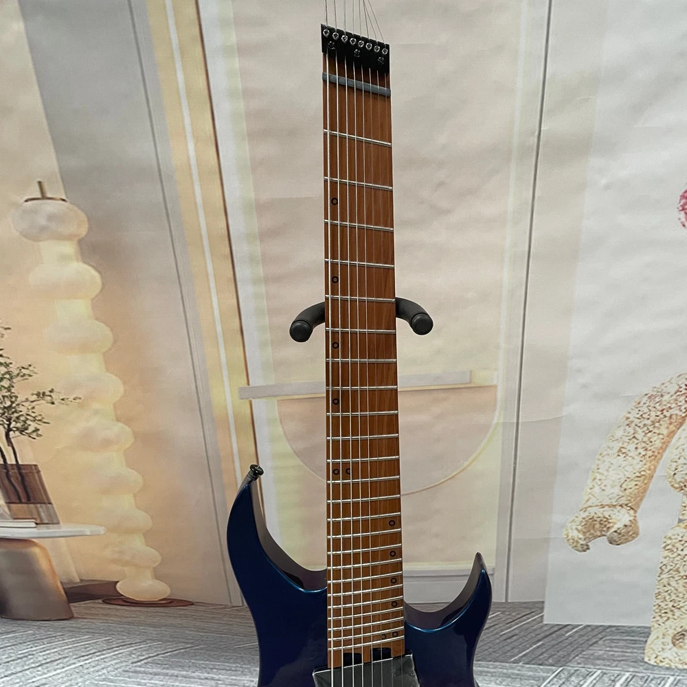The Professional Headless 8-String Guitar in Deep Blue Gloss Finish is a high-quality electric guitar designed for professional musicians. With a solid body and 6mm frets, this guitar delivers excellent sound and performance. The deep blue color adds a stylish touch to the instrument, making it a standout choice for any musician. This guitar set includes a cable for easy connectivity and is right-handed, ideal for right-handed players looking to expand their musical capabilities with an 8-string guitar.
