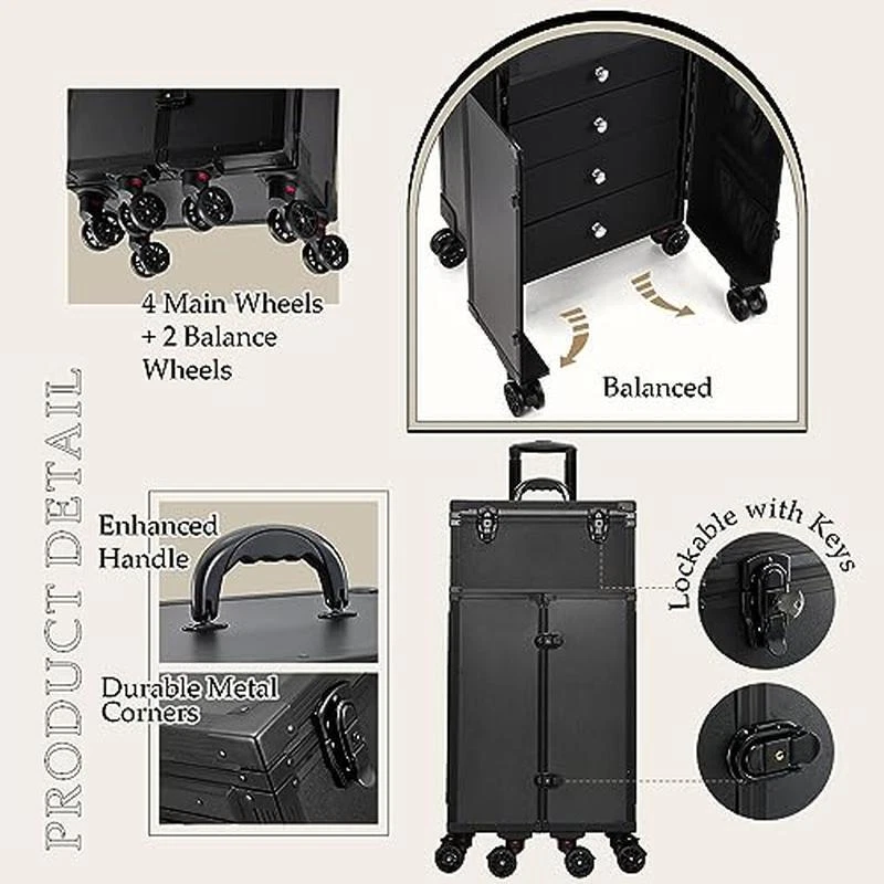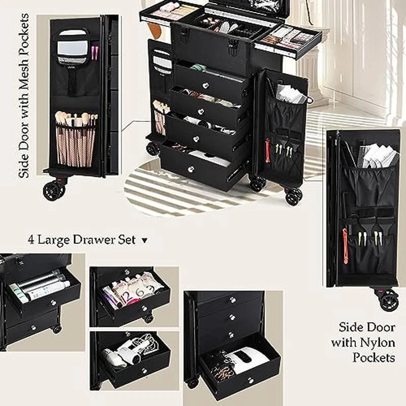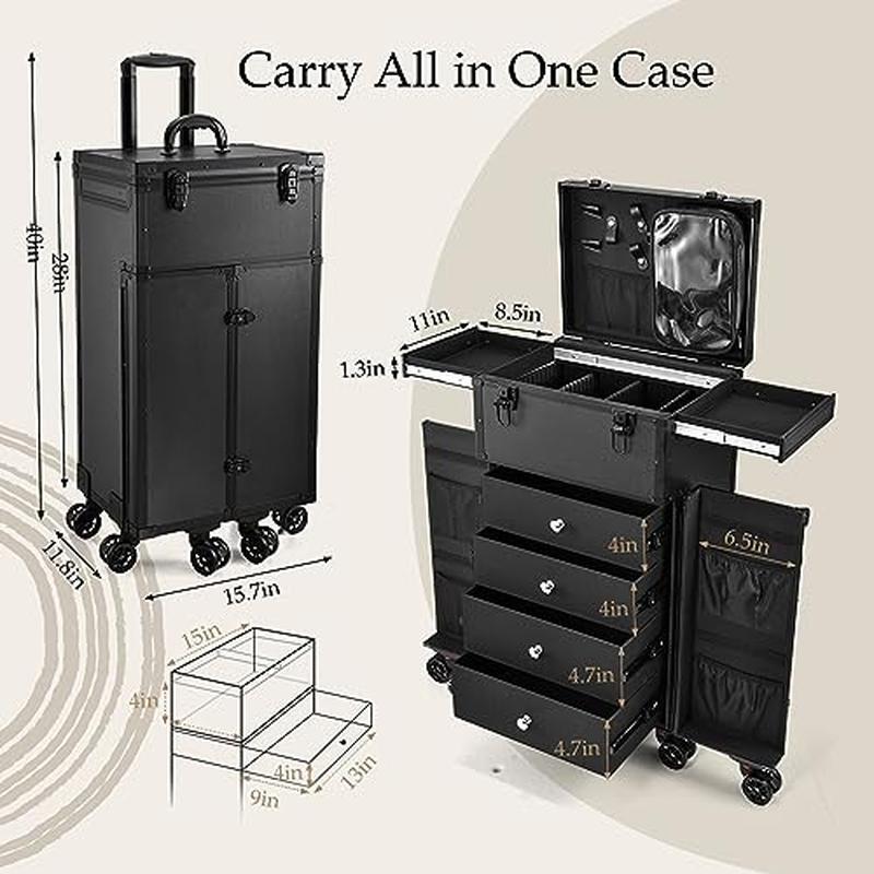 You may also like 14 Qt Aluminum Fry Pot W/Lid Perforated Basket Heavy Duty Handles Frying Cooking 73.79 USD 77.67 USD Free shipping 5% off 2 Piece Wall Mirrors Crush Diamond Decor Hanging Hardware Included Home Accent 41.46 USD 43.64 USD Free shipping 5% off Furnace Filter for Air Conditioner Air Cleaner 1 Count MERV 11 Healthy White US 64.08 USD 67.45 USD Free shipping 5% off Crystal Clear Glass Kettle Electric Soft Open Lid Auto Shut Off 1800W BPA Free 111.43 USD 117.3 USD Free shipping 5% off Turbocharged Twin Size Truck Car Bed Working Headlights Built-In Storage Plastic 385.3 USD 405.58 USD Free shipping 5% off Dog Agility Set Training Exercise Jump Tunnel Weave Poles Portable Equipment New 86.81 USD 91.38 USD Free shipping 5% off Folding Step Ladder W/ Tool Platform Anti-Slip Pedal 500lbs Lightweight Steel US 75.07 USD 79.02 USD Free shipping 5% off Portable CD Player Boombox FM Radio Bluetooth USB Remote Control Disco Light New 45.62 USD 48.02 USD Free shipping 5% off Portable CD Boombox Bluetooth FM Radio USB AUX Input Music Player System Blue 47.32 USD 49.81 USD Free shipping 5% off Adjustable Bookshelf W/Doors Hidden Storage Office Library Retro Design Home New 246.44 USD 259.41 USD Free shipping 5% off 10ft Portable Wheelchair Ramp Folding Aluminum Non-Slip 800lbs Heavy Duty Access 434.69 USD 457.57 USD Free shipping 5% off Adjustable Chrome Wire Shelving Unit 4 Tier Storage Rack 72 x 30 x 18 In Durable 238.5 USD Free shipping Multifunctional Cosmetics Trolley Case: Embrace convenient makeup organizing with our hairstylist rolling makeup case. This makeup rolling trolley can be your cosmetology studio on wheels, a travel companion for makeup artists, and a chic home organizer, all rolled into one. Redefine the way you approach beauty and organization. Convertible Makeup Station: This makeup rolling case is a Convertible Makeup Station, the ultimate answer to your cosmetic needs. With 2 sliding flat trays for a temporary worktop, 4 large drawers set transformed into shelves, and 2 side doors providing steady balance, this makeup case is your versatile solution for seamless beauty sessions. Versatile Storage Compartments: The lid is equipped with scissor slots and a detachable pouch housing the accessories, the upper trays suits your flat palette collections or styling tools. Under the trays is an adjustable storage compartment which is perfect for nail polishes, lipsticks, brushes, or hair removers. In the lower part's 4-shelf drawer set holds, sprays, curling irons, hair dryers, or other supplies. While the side doors' pockets keep your mascaras, eyeliners, and combs accessible. Effortless Mobility Redefined: Experience true Portability with the 6-Wheel rolling makeup case. The telescopic handle and innovative 6-wheel design ensure smooth navigation, while the brakes on the wheels could hold it standing still. With locks that safeguard your cosmetics and tools, this case is about giving you the freedom to carry your beauty world wherever you go, securely and stylishly. Durable Quality: This makeup artist travel case is built with elevated endurance. Crafted from enhanced aluminum alloy and fortified with protective metal corners, it's a guardian of your beauty treasures. The surface of the case is effortless to clean; it maintains its professional allure, ensuring a lasting professional presentation. Main Case Dimensions: 28 inches * 11. 8 inches * 15. 7 inches. You may also like Cordless 40V Hedge Trimmer 24 In Dual Action Blades Lithium Ion Battery Charger 173.46 USD 182.59 USD Free shipping 5% off Multipurpose Adjustable Standing Desk Foldable Computer Table W/ Storage Shelf 164.25 USD 172.89 USD Free shipping 5% off Easy Incline Pool Deck Ladder Above Ground Pools W/Adjustable Handrails 48-54 In 197.1 USD 207.47 USD Free shipping 5% off Handmade Seagrass Storage Basket Organizing Blankets Toys Laundry Decorative New 170.13 USD 179.08 USD Free shipping 5% off 3 In 1 Fire Pit BBQ Grill Table Outdoor Heavy Duty W/ Waterproof Poker Cover New 164.25 USD 172.89 USD Free shipping 5% off 20 Pc Stubby Combination Wrench Set SAE Metric Alloy Steel Off-Corner Design New 89.34 USD 94.04 USD Free shipping 5% off 33x19 In Stainless Steel Drop-In Kitchen Sink Deep Dual Bowl Mobile Homes New 174.82 USD 184.02 USD Free shipping 5% off X-Large Pet Food Storage Container W/ Airtight Seal Magnetic Scoop Wheels New 148.19 USD 211.19 USD Free shipping 30% off Adjustable Wire Shelving 4 Tier Storage Unit Durable Chrome 72 x 30 x 18 In New 238.5 USD Free shipping Airtight Pet Food Storage Container W/ Magnetic Scoop Locking Handle Wheels New 148.19 USD 211.19 USD Free shipping 30% off Adjustable Chrome Wire Shelving Unit 4 Tier Storage Rack 72 x 30 x 18 In Durable 238.5 USD Free shipping Two Door Portable Dog Crate Air Transport Easy Clean Hold 50 Lbs Pets Medium New 175.98 USD 185.24 USD Free shipping 5% off