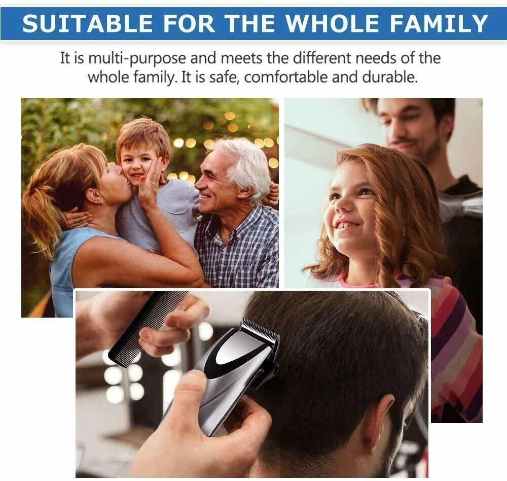 Product Description: ✅Warm reminder: Thank you very much for purchasing our products. After using our products for 20 minutes, please place the products for 10 minutes for buffering, so as to maintain the service life of the products longer.)The blade of the men's electric clipper uses a unique blade assembly silent technology, which can greatly reduce internal friction. The men's hair clipper motor uses a high-speed pure copper core silent motor. (not include oil bottle) ✅Smooth: The ceramic blade of the electric clipper is low in sound, sharp and durable, its hardness is second only to diamond, the clarity is 10 times that of the ordinary blade, and the wear resistance is 60 times that of the ordinary blade. It is a superb hair clipper. ✅Lightweight: This professional electric Hair cut is lightweight, and the arm can be used continuously without pain. The cordless electric clipper is easy to store and sort, and is convenient for use at all angles. ✅Security: charging is easy to use worldwide. The blade is designed with an obtuse R-shape, even if the blade is pinched by hand, it will not be cut. The body edge of the electric hair clipper is smooth and has no cuts, which is suitable for men and children. This hair clipper is suitable for men and children in the family. Also recommended to professional hairdressers and designers. Product Details: ♥ Warm reminder: Thank you very much for purchasing our products. After using our products for 20 minutes, please place the products for 10 minutes for buffering, so as to maintain the service life of the products longer.)The blade of the men's electric clipper uses a unique blade assembly silent technology, which can greatly reduce internal friction. The men's hair clipper motor uses a high-speed pure copper core silent motor.(not include oil bottle) Smooth: The ceramic blade of the electric clipper is low in sound, sharp and durable, its hardness is second only to diamond, the clarity is 10 times that of the ordinary blade, and the wear resistance is 60 times that of the ordinary blade. It is a superb hair clipper. Lightweight: This professional electric Hair cut is lightweight, and the arm can be used continuously without pain. The cordless electric clipper is easy to store and sort and is convenient for use at all angles. Security: charging is easy to use worldwide. The blade is designed with an obtuse R-shape, even if the blade is pinched by hand, it will not be cut. The body edge of the electric hair clipper is smooth and has no cuts, which is suitable for men and children. This hair clipper is suitable for men and children in the family. Also recommended to professional hairdressers and designers. Warm reminder: Thank you very much for purchasing our products. After using our products for 20 minutes, please place the products for 10 minutes for buffering, so as to maintain the service life of the products longer. Package Includes: 1 * trimmer 1 * comb 4 * Limit comb 1 * plug