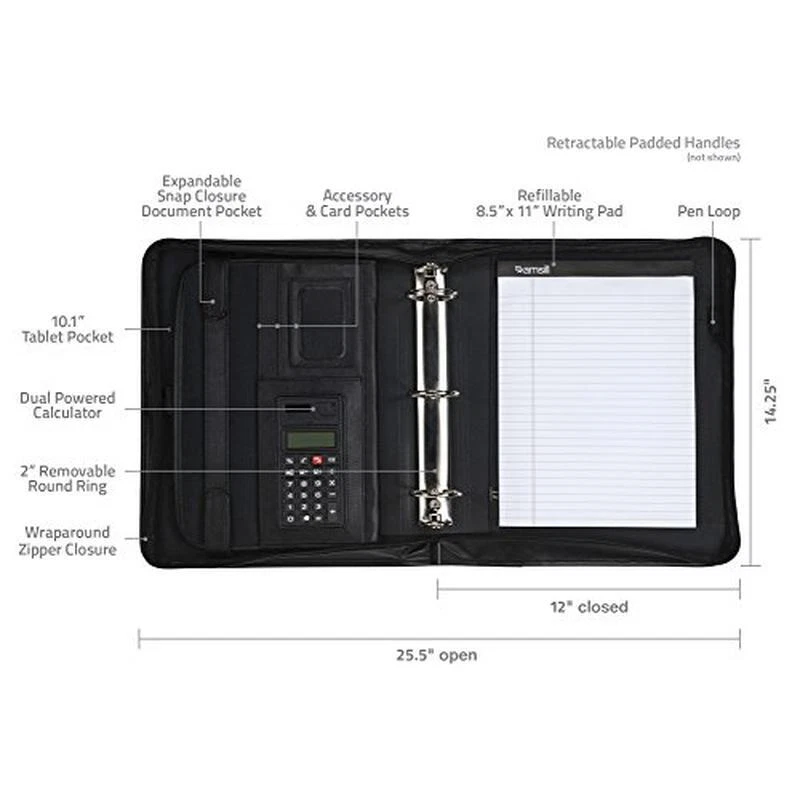 You may also like Extra Large Capacity Galvanized Steel Post Mount Mailbox W/ Outgoing Flag New 37.78 USD 53.97 USD Free shipping 30% off Weatherproof Outdoor Cat House Insulated Rabbit Hutch Small Pets Shelter Wood 41.99 USD 59.99 USD Free shipping 30% off Hot Cold Water Dispenser 5 Gallon Cooler Child Safety Lock Storage Cabinet New 69.29 USD 98.99 USD Free shipping 30% off AC Furnace Air Filter MPR 1000 Micro Allergen Defense Deep Pleat 2-Pack White 34.83 USD 49.76 USD Free shipping 30% off PVC Garden Trellis Plant Support Vines Climbing Flowers Vegetables W/ Anchors 44.71 USD 63.87 USD Free shipping 30% off 3 In 1 Nail Polish Organizer Wall Rack Holds 200 Bottles Essential Oils Display 47.52 USD 67.89 USD Free shipping 30% off Versatile End Table Storage Nightstand Kitchen Shelf Living Room Bedroom Office 26.59 USD 37.99 USD Free shipping 30% off Computer Credenza W/ Pull-Out Drawer Electrical Access Storage Home Office New 160.99 USD 229.99 USD Free shipping 30% off Adjustable Wooden Pet Stairs 4 Levels Foldable Dog Steps Non-Slip Design White 79.79 USD 113.99 USD Free shipping 30% off Half HP Compact Garbage Disposal Powerful Grinding Easy Install Eco Friendly New 62.92 USD 89.89 USD Free shipping 30% off Computer Desk W/ LED Lights Power Outlets 3 Drawers Storage Home Writing Table 62.99 USD 89.99 USD Free shipping 30% off Adjustable Toilet Safety Frame W/ Padded Arms Enhanced Stability Supports 300 Lb 46.54 USD 66.48 USD Free shipping 30% off THE ONLY PADFOLIO YOU’LL EVER NEED –Samsill Professional Zipper Ring Binder Portfolio combines incredible utility with a timeless style & class to bring you a business accessory you’ll never want to part with – The only business portfolio binder you’re ever going to need LOOK & FEEL OF PREMIUM NAPA LEATHER – The old-school charm & grace of real-deal Napa Leather is back – This faux vegan leather padfolio bears authentic touch, feel & look of premium Napa Leather – Soft-padded cover is just about perfect for all professional needs SECURITY OF ZIPPERED CLOSURE – We know you value all the stuff you’ll be organizing with our executive portfolio & that’s why, we’ve taken extra care to secure your belongings with a wraparound zippered closure – Also includes an inside zippered pocket UNIVERSAL TABLET SLEEVE – Keeping up with the evolving needs of professionals like you, we’ve also included a universal 10. 1-inch padded tablet sleeve to help you keep your expensive iPad, Google Nexus, Samsung Galaxy & most other tablets safe, secure & handy REMOVABLE THREE RING BINDER – The included removable 2-inch round ring binder adds to the versatility and lets you organize up to 450 sheets of paper RETRACTABLE HANDLES – Students and professionals may have to carry a lot throughout the day and for this we have provided retracted handles, which makes this pad holder comfortable to carry and extremely useful DUAL POWERED CALCULATOR – For quick calculations when you are in a client or business meeting, this executive portfolio comes with a built-in calculator that can run on solar or battery power You may also like L Shaped Gaming Desk W/ LED Lights USB Outlets Storage Drawers Monitor Stand New 69.99 USD 99.99 USD Free shipping 30% off European Faux Linen Tablecloth 68x108 In Spill Proof Decorative Cover Non-Stain 27.99 USD 39.99 USD Free shipping 30% off Versatile End Table Storage Nightstand Kitchen Shelf Living Room Bedroom Office 26.59 USD 37.99 USD Free shipping 30% off Bathroom Mirror Cabinet W/ Storage Adjustable Shelves Open Compartment Modern 69.99 USD 99.99 USD Free shipping 30% off 2 Piece Nesting Coffee Table Set Modern Farmhouse Rustic Wood Black Metal Legs 125.99 USD 179.99 USD Free shipping 30% off Stackable Bariatric Medical Chair Antimicrobial Vinyl 1000 Lb Capacity Reception 89.55 USD 127.93 USD Free shipping 30% off Heavy Duty Retractable Ratchet Straps 2 In 10 Feet Self Retracting Tie Downs New 46.66 USD 66.66 USD Free shipping 30% off Expandable Computer Desk W/ Storage Drawers Open Shelf Home Office Table Wood 79.09 USD 112.99 USD Free shipping 30% off Large Writing Desk W/ Drawer Simple Design Home Office Sturdy Construction New 31.57 USD 45.1 USD Free shipping 30% off Non-Slip Absorbent Kitchen Mats 2 PCS Stain Resistant Washable Floor Runner New 41.99 USD 59.99 USD Free shipping 30% off Quiet-Close Elongated Toilet Seat Grip-Tight Bumpers Easy Clean Quick Install US 49.58 USD 70.83 USD Free shipping 30% off Adjustable Toilet Safety Frame W/ Padded Arms Enhanced Stability Supports 300 Lb 46.54 USD 66.48 USD Free shipping 30% off