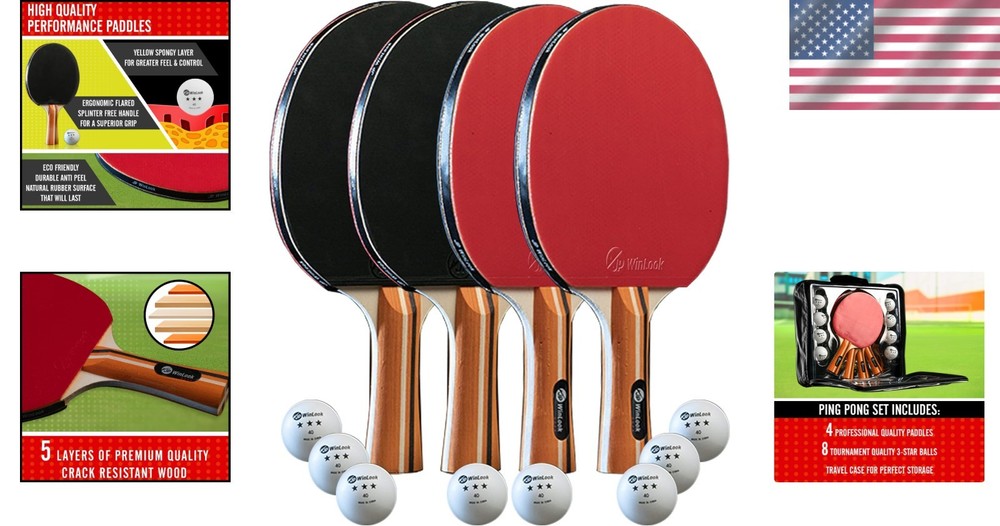 Professional Ping Pong Paddle Set with Carrying Case & 8 Competition Balls ‹ › ‹ › ‹ › ‹ › ‹ › ‹ › ‹ › ‹ › Professional Ping Pong Paddle Set Includes Carrying Case & 8 Competition Balls Designed for Everyone Professional Quality Ping Pong Paddles suitable for players of all ages - from beginner to expert. Imported materials guarantee high performance and reliability. Everything You Need to Play This set includes 4 table tennis racquets , 8 ping pong balls , and a convenient portable case . Perfect for keeping your gear organized or for travel! Exceptional Quality Materials Paddles are crafted from high-quality crack-resistant wood with a 5-layer construction for added durability. Features an ergonomic, flared handle for comfort and optimal control during gameplay. The medium-soft bounce sponge enhances feel and spin, elevating your game. Professional Competition Balls The set includes 8 competition quality 3-star ITTF approved balls, designed for both amateurs and pros. Each ball measures 40mm in diameter and is crafted from durable ABS material. Perfect for Any Setting This set is ideal for both indoor and outdoor play , perfect for family gatherings, picnics, and friendly matches. Bring the excitement of ping pong poolside or set up a competitive game on picnic tables. Trust in Quality Looking for a trusted brand with a long, proven track record? Look no further! Our Professional Ping Pong Paddle Set promises quality at an affordable price, bringing you the ultimate ping pong experience. Upgrade your game—order your Professional Ping Pong Paddle Set today! Shipping Free & Fast Shipping - We offer free shipping to most of the USA with a normal delivery time of 3-7 days. However, due to the current situation, additional delivery time (up to 3 weeks) may be required for some items. Alternative Carriers - We may use alternative carriers (e.g. USPS, FedEx, UPS, etc.) to ensure your package arrives safely and on time. Due to the use of multiple carriers, we are unable to provide a tracking number automatically. Handling Time - Orders are processed and shipped within 1-2 business days of receiving cleared payment. Shipping Restrictions - Shipping to Alaska, Hawaii, Puerto Rico, Guam, and other US territories may incur shipping charges or delivery restrictions. Please contact us before ordering, or your order can be refunded/cancelled. State Restrictions - There may be restrictions based on your state of purchase. For example, certain items may not be shipped to California due to state regulations. Contact for Tracking Updates - If you require tracking updates or have any concerns about the delivery of your order, please feel free to contact us, and we will be happy to assist you. Return 30-Day Hassle-Free Returns - We want you to be completely satisfied with your purchase. If you are not, you can return the item within 30 days of receiving it for a full refund or exchange. Easy Return Process - To start a return, simply contact us and we will provide you with a prepaid return shipping label and detailed instructions. Restocking Fee - There are no restocking fees for returns. However, the buyer is responsible for return shipping costs if the return is not due to a seller's error. Refund Processing Time - Refunds will be processed within 5 business days of receiving the returned item in its condition. Payment We accept all major credit cards, PayPal, and Apple Pay for your convenience. Your payment information is secure and encrypted to ensure a safe and seamless transaction. Please complete your payment within 3 days of purchase to avoid any delays in shipping. Feedback Your feedback is extremely important to us. We strive to provide the best products and customer service possible. If you are satisfied with your purchase, please take a moment to leave us a positive review. If you have any concerns or issues with your order, please contact us before leaving negative feedback. We are committed to resolving any problems and ensuring your satisfaction. Contact Us If you have any questions or concerns, please feel free to out to our customer support team. You can contact us through the eBay messaging system. We are available Monday to Friday, 9:00 am to 5:00 pm EST, and we will do our best to respond to your inquiry within 24 hours. Buy it now and enjoy a pleasant shopping experience!