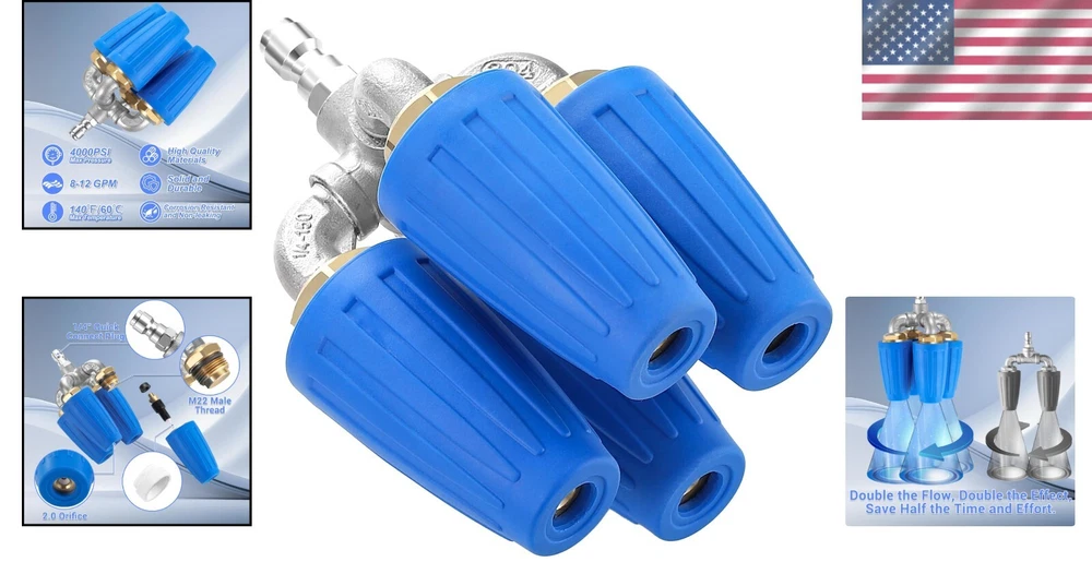 Professional Quality 4-in-1 Turbo Nozzle - 4000 PSI Pressure Washer Accessory ‹ › ‹ › ‹ › ‹ › ‹ › ‹ › ‹ › ‹ › ‹ › ‹ › Professional Quality 4-in-1 Turbo Nozzle - 4000 PSI Pressure Washer Accessory Innovative Upgrade Experience the pinnacle of cleaning efficiency with our quadruple pressure washer turbo nozzle. Designed to expand your cleaning capabilities, this innovative tool adds a row of dual turbo nozzles to the existing dual setup, multiplying the spray range up to four times compared to traditional single rotating nozzles. Achieve remarkable results as it effortlessly eliminates stubborn stains on any surface with a powerful flow of water. Wide Application This versatile 4-in-1 pressure washer turbo tip adapts seamlessly to a variety of cleaning scenarios, fulfilling your needs for swift and effective cleaning. From cars to floors, driveways, walls, and decks, our turbo nozzle excels in tackling heavily soiled areas, becoming your essential ally in both home and commercial cleaning tasks. Excellent Quality Constructed from premium 304 stainless steel, heavy-duty solid brass, and high-quality plastic, ensuring durability and resistance to rust, corrosion, and leaks. Engineered to withstand a maximum working pressure of 4000 PSI and temperatures up to 140℉/60℃, facilitating a wide range of applications. With a nozzle orifice size of 2.0 and a flow rate of 8.0-12.0 gallons per minute, this turbo nozzle delivers consistent, high-performance cleaning. Easy Connection Designed with convenience in mind, the quadruple turbo tip features a 1/4" quick connection that ensures seamless attachment and detachment from your pressure washer gun and wand. Compatible with most pressure washer models, it allows for a powerful, steady water flow that enhances your cleaning efficiency. Why Choose Our Turbo Nozzle? Your search for an effective cleaning solution ends here. The Professional Quality 4-in-1 Turbo Nozzle combines durability, versatility, and powerful performance, making it the ultimate choice for anyone serious about maintaining cleanliness in their environment. Trust in our craftsmanship and reliability as you tackle even the toughest cleaning challenges. Transform your cleaning experience today – order your Professional Quality 4-in-1 Turbo Nozzle now and discover the superior cleaning power it brings to your routine. Shipping Free & Fast Shipping - We offer free shipping to most of the USA with a normal delivery time of 3-7 days. However, due to the current situation, additional delivery time (up to 3 weeks) may be required for some items. Alternative Carriers - We may use alternative carriers (e.g. USPS, FedEx, UPS, etc.) to ensure your package arrives safely and on time. Due to the use of multiple carriers, we are unable to provide a tracking number automatically. Handling Time - Orders are processed and shipped within 1-2 business days of receiving cleared payment. Shipping Restrictions - Shipping to Alaska, Hawaii, Puerto Rico, Guam, and other US territories may incur shipping charges or delivery restrictions. Please contact us before ordering, or your order can be refunded/cancelled. State Restrictions - There may be restrictions based on your state of purchase. For example, certain items may not be shipped to California due to state regulations. Contact for Tracking Updates - If you require tracking updates or have any concerns about the delivery of your order, please feel free to contact us, and we will be happy to assist you. Return 30-Day Hassle-Free Returns - We want you to be completely satisfied with your purchase. If you are not, you can return the item within 30 days of receiving it for a full refund or exchange. Easy Return Process - To start a return, simply contact us and we will provide you with a prepaid return shipping label and detailed instructions. Restocking Fee - There are no restocking fees for returns. However, the buyer is responsible for return shipping costs if the return is not due to a seller's error. Refund Processing Time - Refunds will be processed within 5 business days of receiving the returned item in its original condition. Payment We accept all major credit cards, PayPal, and Apple Pay for your convenience. Your payment information is secure and encrypted to ensure a safe and seamless transaction. Please complete your payment within 3 days of purchase to avoid any delays in shipping. Feedback Your feedback is extremely important to us. We strive to provide the best products and customer service possible. If you are satisfied with your purchase, please take a moment to leave us a positive review. If you have any concerns or issues with your order, please contact us before leaving negative feedback. We are committed to resolving any problems and ensuring your satisfaction. Contact Us If you have any questions or concerns, please feel free to reach out to our customer support team. You can contact us through the eBay messaging system. We are available Monday to Friday, 9:00 am to 5:00 pm EST, and we will do our best to respond to your inquiry within 24 hours. Thank you for supporting our small family business! UPC: Not Set Unit Quantity: 1 Features: Quick Connect,Quadruple Nozzle,Rotating Nozzle,Turbo Nozzle,High Pressure Cleaning,Wide Application Items Included: Pressure Washer Turbo Nozzle Material: Stainless Steel,304 Stainless Steel,Brass,High Quality Plastic Type: Pressure Washer Nozzle Brand: Unbranded Power Source: Not Set Maximum Pressure: 4000 psi Product Line: Not Set Voltage: Not Set Model: Not Set Horsepower: Not Set Power: Not Set Engine Type: Not Set Soap Tank Capacity: Not Set Fuel Tank Capacity: Not Set Engine Size: Not Set Manufacturer Warranty: Not Set MPN: Not Set Noise Level: Not Set Color: Silver Year Manufactured: Not Set Item Height: Not Set Item Diameter: Not Set Country/Region of Manufacture: Not Set Cable Length: Not Set Item Length: Not Set Item Width: Not Set Style: Quadruple Nozz