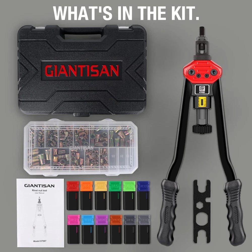 Professional Rivet Nut Tool Kit – 12 Metric & SAE Mandrels, Effort-Saving Design ‹ › ‹ › ‹ › ‹ › ‹ › ‹ › ‹ › ‹ › ‹ › ‹ › ‹ › Professional Rivet Nut Tool Kit Experience the ultimate in riveting efficiency with our Professional Rivet Nut Tool Kit, featuring 12 Metric & SAE Mandrels and an innovative effort-saving design that transforms your projects with precision and ease. Key Features: Innovative Mechanism: Toolless operation for effortless head changes; the inner threaded base & hex sleeve securely locks the mandrel during riveting. Strong and Durable: Crafted from thick carbon steel with heat-treated components, and black phosphating finishing for corrosion resistance. Robust Design: U cross-section of arm ensures high reliability, preventing bending even under stress; designed for long-life performance. Versatile Applications: Ideal for metal plate work, bicycle and car attachments, and various riveting projects. Organized Storage: Complete with 12 interchangeable mandrels (M3, M4, M5, M6, M8, M10, M12, 10-24, 1/4-20, 3/8-16, 5/16-18, 1/2-13), 176 rivnuts, a spanner, detailed user manual, and rugged carrying case to keep everything neat and accessible. Why Choose Our Rivet Nut Tool Kit? Revolutionize your riveting experience with our Professional Rivet Nut Tool Kit. Engineered for professionals and enthusiasts alike, it incorporates cutting-edge design concepts that combine simplicity, comfort, and superior performance. The 16" design enables you to save up to 50% more effort compared to standard tools, allowing for a smoother workflow. Backed by premium service and customer support, we are committed to your satisfaction, ensuring you have everything you need to conquer any riveting task. Join the Giants of Artisanship At GIANTISAN, we believe in equipping you with the right tools to elevate your craftsmanship. Step into the world of professional riveting with our unrivaled tool kit today! Shipping Free & Fast Shipping - We offer free shipping to most of the USA with a normal delivery time of 3-7 days. However, due to the current situation, additional delivery time (up to 3 weeks) may be required for some items. Alternative Carriers - We may use alternative carriers (e.g. USPS, FedEx, UPS, etc.) to ensure your package arrives safely and on time. Due to the use of multiple carriers, we are unable to provide a tracking number automatically. Handling Time - Orders are processed and shipped within 1-2 business days of receiving cleared payment. Shipping Restrictions - Shipping to Alaska, Hawaii, Puerto Rico, Guam, and other US territories may incur shipping charges or delivery restrictions. Please contact us before ordering, or your order can be refunded/cancelled. State Restrictions - There may be restrictions based on your state of purchase. For example, certain items may not be shipped to California due to state regulations. Contact for Tracking Updates - If you require tracking updates or have any concerns about the delivery of your order, please feel free to contact us, and we will be happy to assist you. Return 30-Day Hassle-Free Returns - We want you to be completely satisfied with your purchase. If you are not, you can return the item within 30 days of receiving it for a full refund or exchange. Easy Return Process - To start a return, simply contact us and we will provide you with a prepaid return shipping label and detailed instructions. Restocking Fee - There are no restocking fees for returns. However, the buyer is responsible for return shipping costs if the return is not due to a seller's error. Refund Processing Time - Refunds will be processed within 5 business days of receiving the returned item in its original condition. Payment We accept all major credit cards, PayPal, and Apple Pay for your convenience. Your payment information is secure and encrypted to ensure a safe and seamless transaction. Please complete your payment within 3 days of purchase to avoid any delays in shipping. Feedback Your feedback is extremely important to us. We strive to provide the best products and customer service possible. If you are satisfied with your purchase, please take a moment to leave us a positive review. If you have any concerns or issues with your order, please contact us before leaving negative feedback. We are committed to resolving any problems and ensuring your satisfaction. Contact Us If you have any questions or concerns, please feel free to reach out to our customer support team. You can contact us through the eBay messaging system. We are available Monday to Friday, 9:00 am to 5:00 pm EST, and we will do our best to respond to your inquiry within 24 hours. Thank you for supporting our small family business! UPC: Not Set Model: Not Set Item Width: Not Set Item Length: Not Set Item Height: Not Set Item Diameter: 16 Item Weight: 9.83 Unit Quantity: 1 Material: Carbon Steel,Plastic,Steel Brand: Unbranded Type: Rivet Nut Tool Number of Pieces: 12 Manufacturer Warranty: Not Set MPN: Not Set Color: Black Country/Region of Manufacture: Not Set Unit Type: lb