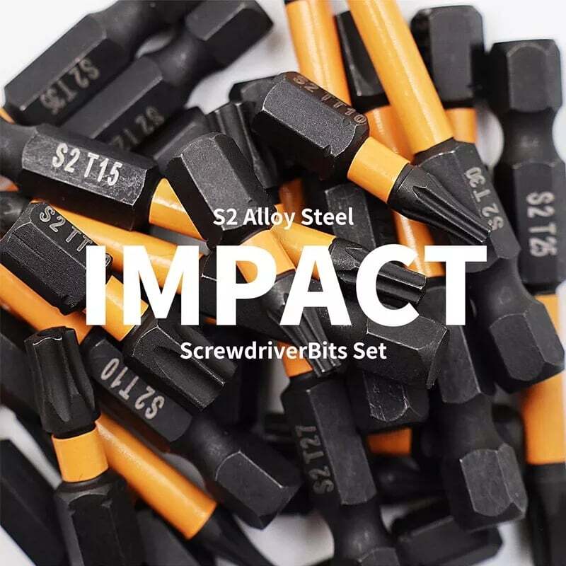 This torx bit set is amazing! The S2 alloy steel construction feels super sturdy and durable—perfect for tough jobs. I love the variety of sizes included, and both the 25mm and 50mm lengths work smoothly in my impact driver. The middle hole torx bits are a smart addition for extra grip. The black and orange design looks sharp, and the hex shank fits securely. Great for professional or DIY use—no slipping or stripping. Super reliable!