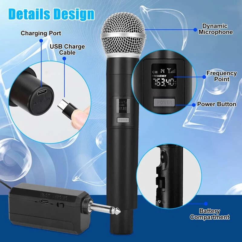 Application: Universally used in various sizes of speakers, amplifiers, power Frequency: 261.8 MHZ Model: Dynamic Microphone Brand: Unbranded Wireless Technology: VHF Special Features: Easy setup and synchronization between the microphone and receive UPC: Does not apply Feature: Handheld microphone design for convenient and versatile use Form Factor: Handheld/Stand-Held Features: Rechargeable receiver for hassle-free operation Suitable For: teachging, speaking, meeting gtin13: Does not apply Connectivity: Wireless Fit For: Wireless handheld microphone system for various applications