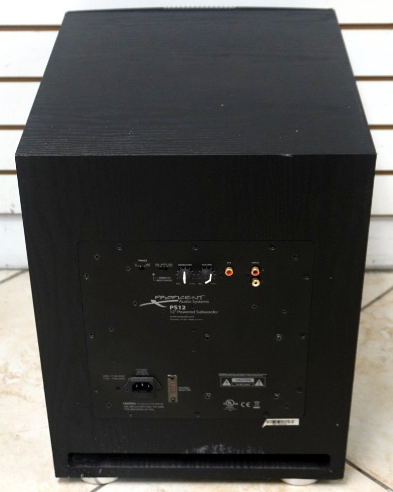 - FOR SALE - Proficient Audio PS12 12" Powered Subwoofer Please note that you will be purchasing a Proficient Audio PS12 12" Powered Subwoofer. The sub is pre-owned, but works well as originally intended. It has some slight visible cosmetic imperfections from previous use, including some slight scuffs, dents, and rips on the mesh. This listing will include the sub and power cable. Please refer to the photographs provided for a greater general idea of the cosmetic quality of the unit. Thank you! FREE SHIPPING TO LOWER 48 STATES