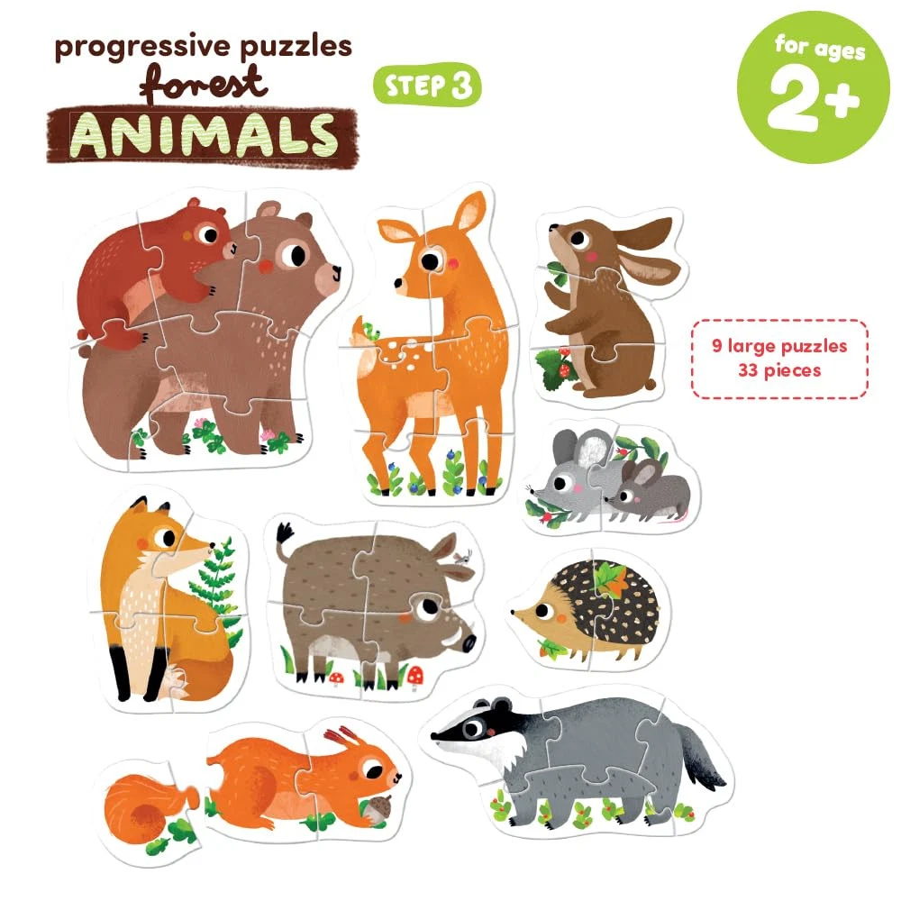 A handy box inhabits many forest animals: from small mice to bears. 9 jigsaw puzzles have a different number of pieces: 2, 3, 4, 5 and 6. In their separation will help different background colors on the reverse. Children can gradually perfect the art of putting together increasingly difficult jigsaws. Beautiful illustrations, large elements and the form of the product make the set perfect as the first multi-element puzzle for children. Play and Grow with Progressive Puzzles – sorting and assembling progressive puzzles is a great way to practice association skills, help develop hand-eye coordination and improve manual dexterity Progressive Puzzles Build Self-Esteem - the difficulty level of puzzles progress so can challenge and develop their skills, building self-esteem as they complete each dinosaur puzzle Worry-Free Toys and Games Designed for your and Home - tested to the strictest safety standards to be 100% -safe Puzzles Made in Poland with Top Quality Materials and Engaging Design - jumbo puzzle pieces look amazing with bright colors and are made of high-quality, thick cardboard perfect for little hands Even the Box is Awesome - the sturdy box with carry handle makes this game portable for fun on-the-go or on travel, it's easy to put away and , and it makes a great gift