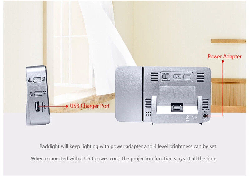 You Might Also Like Waterproof Digital Sports Watch Military Tactical LED Backlight Wristwatch Men 9.34 USD 10.99 USD Free shipping 15% off Black Resin Watch Strap For CASIO Sport Diving Watch Rubber Replacement Band 7.22 USD 8.49 USD Free shipping 15% off Replacement 6 Channel USB Receiver Dongle For Logitech Unifying Keyboard/Mouse 11.3 USD 13.29 USD Free shipping 15% off Replacement USB Receiver Dongle For Logitech M950 M310 M525 M720 Keyboard 8.24 USD 9.69 USD Free shipping 15% off USB Wireless Bluetooth Receiver 3.5mm AUX Audio Stereo Music Home Car Adapter 8.07 USD 9.49 USD Free shipping 15% off 18MM Watchband For Casio W-800H F-91 W-218H Watch Band Replacement Black Strap 7.64 USD 8.99 USD Free shipping 15% off 1 PCS 7S26A Movement Automatic Rotor Oscillating Weight For Seiko NH35 NH36 11.04 USD 12.99 USD Free shipping 15% off 4 Colors For PSP3000 Shell Case Replacement Full Housing Cover With Buttons 17.74 USD 20.87 USD Free shipping 15% off 12V Digital Thermostat Temperature Control Switch Sensor Module Board 8.66 USD 10.19 USD Free shipping 15% off For NZXT Aer RGB InOut Cable Input Cable Connection Cable Case Fan Adapter Cable 7.3 USD 8.59 USD Free shipping 15% off Touch Screen Pen Stylus Drawing Universal For iPhone iPad Samsung Tablet Phone 8.49 USD 9.99 USD Free shipping 15% off 3.0-7.0mm Assorted Watch Crown Head Upgrade Parts Repair Tools & Kits Watchmaker 12.32 USD 14.49 USD Free shipping 15% off Product Description If you have any questions, please contact customer service first, do not open disputes easily, thank you! Product Features: (1) Temperature and time projection and on/off button; (2) Dual alarm clock with snooze function; (3) 12/24 hour system time; (4) The calendar has 7 optional languages (English, German, Italian, French, Spanish, Dutch and Danish); 5) Indoor temperature and humidity, alternating in degrees Celsius or Fahrenheit; (6) 1 USB charger, convenient for charging electronic devices; (7) The projection angle can be changed; (8) Small, simple design and large digital display make it easy to read all information from all angles. Power supply: 2 aaa batteries (not included) or USB power cord (included). Product Description: Automatic snooze function: Follow the steps below to turn on the automatic snooze function. When the alarm sounds, touch the "light/snooze" button to turn on the snooze function. Then the snooze function is activated or flashes on the icon on the screen. This action will move the alarm back in 5 minutes, and the alarm will be reset at that moment. Press any button to stop the snooze function. F. yi: If one alarm is delayed during this process and another alarm sounds, the snooze function of the first alarm will be automatically stopped. Backlight: At any time, touching the "light up/snooze" button will turn on the backlight for 8 seconds. If you use a USB cable, the product backlight will have 4 brightness modes, low and medium light output, each time you tap it to switch to one mode. And it can stay on all the time. Charging function: In the case of using a usb cable, the mobile phone or pda can be charged through the usb plug on the left side of the product. Projection function: The projection lamp on the right side of the product can project the current time and clock temperature on the wall or roof to watch the night time. If the projection direction is not correct, please press the ldquo middle direction behind the rdquo button on the remote control to switch the screen direction . When using the USB data cable, the projection will always work. You can choose to turn on or not turn on the projection lamp through the power switch on the back of the product. When powered by battery, you can also use this switch to select whether the projection lamp and the backlight are turned on at the same time. Package Contents: 1*Projection alarm clock 1*USB power cord 1*User Manual Payment Shipping Contact Us We accept paypal payments and all payments authorized by eBay. 1.We ship to your eBay or Paypal address. Please make sure your eBay and Paypal address is correct before you pay. 2.Items will be shipped within 1-2 business day when we received payment. 3.Delivery time depends on destination and other factors We strive for 100% customer satisfaction! Postive Feedback is very important to us. If you have any questions, please feel free to contact us via "Ask seller a question" , we will reply your email within 24 Working hours. Payment We accept paypal payments and all payments authorized by eBay. Shipping 1.We ship to your eBay or Paypal address. Please make sure your eBay and Paypal address is correct before you pay. 2.Items will be shipped within 1-2 business day when we received payment. 3.Delivery time depends on destination and other factors Contact Us We strive for 100% customer satisfaction! Postive Feedback is very important to us. If you have any questions, please feel free to contact us via "Ask seller a question" , we will reply your email within 24 Working hours. powered by