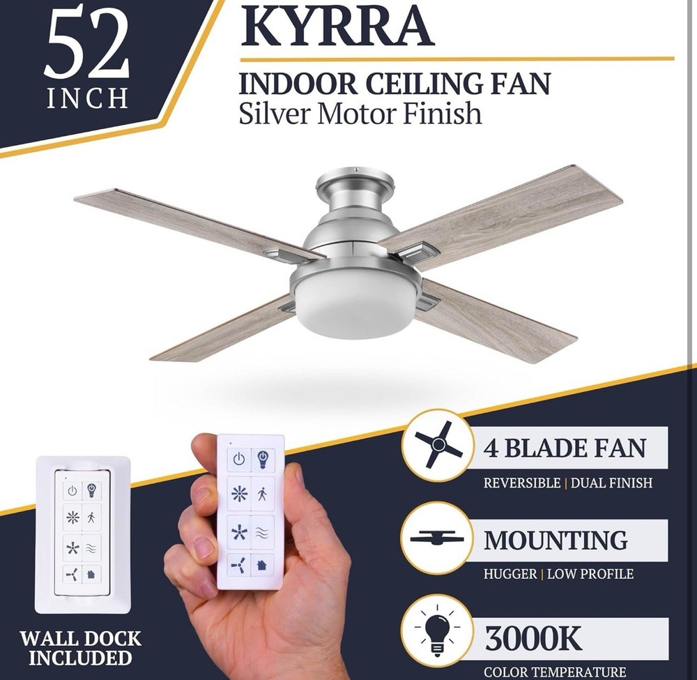 The Prominence Home Kyrra 52 Inch Contemporary Indoor Semi Flush Mount LED Ceiling Fan is a stylish and modern lighting fixture suitable for various rooms in your home, such as the bedroom, living room, kitchen, and home office. It features a remote control for convenient operation and has a brushed nickel finish that adds a contemporary touch to your space. With a sleek design and LED lighting technology, this ceiling fan provides both functionality and a warm, clear white light that creates a cozy ambiance in any room. Perfect for adding a touch of sophistication to your home decor.