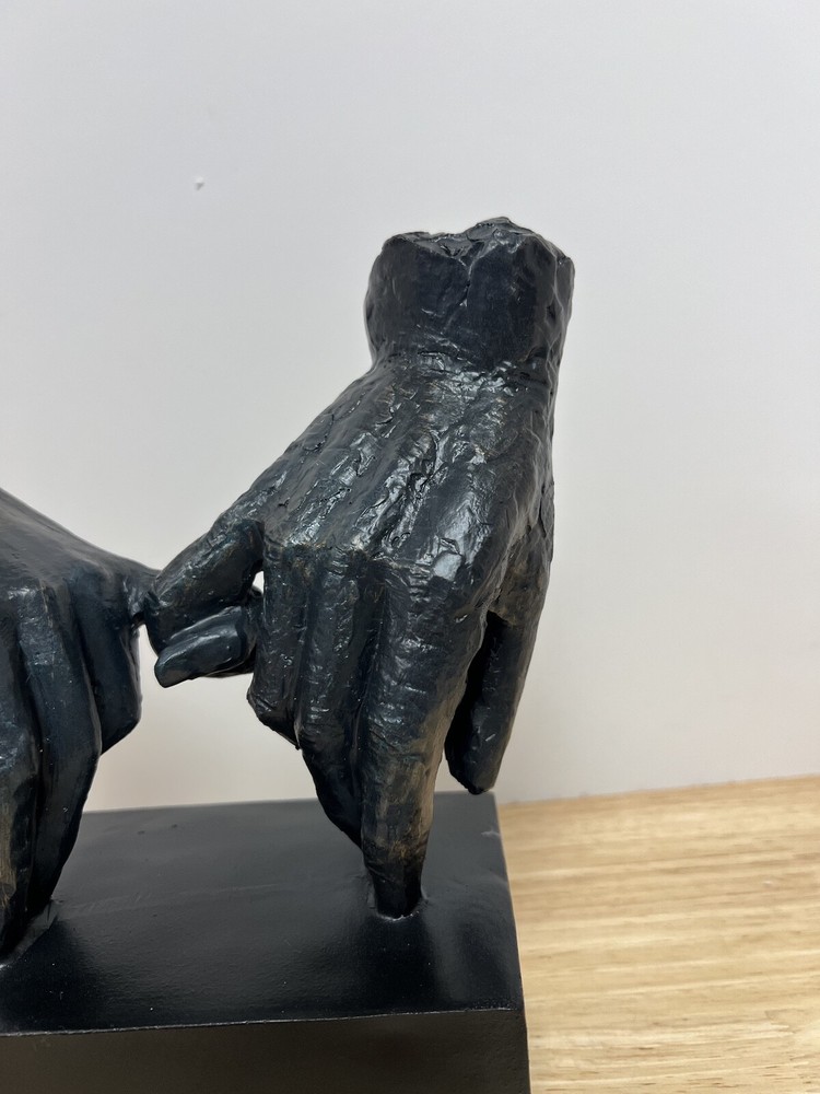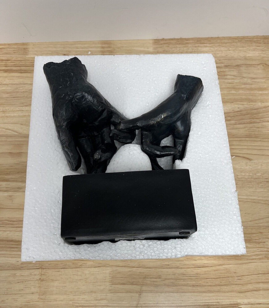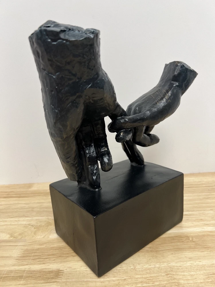 The product is a medium-sized sculpture created using pottery production technique. The statement piece depicts two hands holding a symbolic representation of love and figures, making it an inspirational and people-themed artwork. Created as a single piece, this sculpture is sure to make a bold statement in any art collection. Flint River Habitat for Humanity is a non-profit organization. Our ReStore is one of the ways we fund the mission of Habitat in our community. 100% of sales from our store are put back into our community. The majority of our merchandise is donated by members of our community. This item was donated from an estate sale. We quality inspect every item but please look over the pictures carefully. Please message if you have any questions. ~We will ship your purchase within 3 days of your payment. ~We only accept PAYPAL for payment.