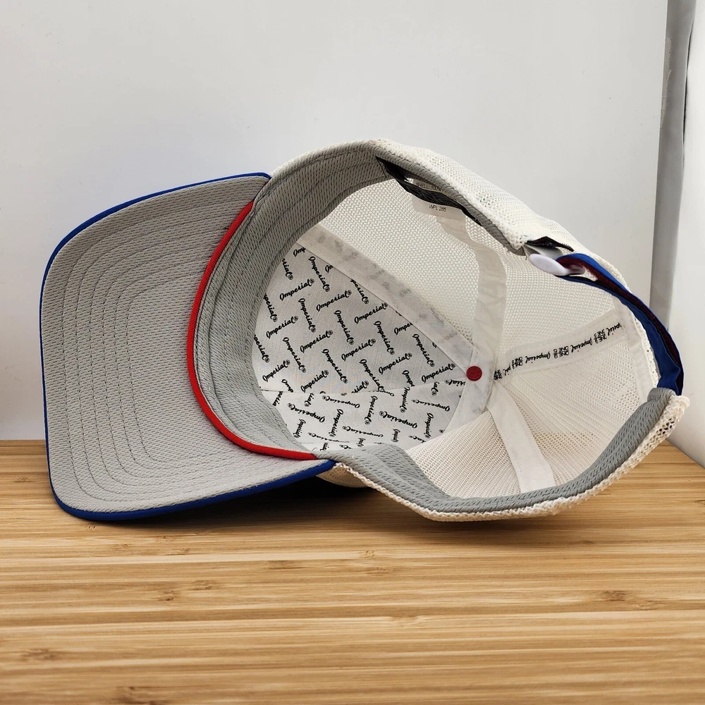 This Imperial golf hat is perfect for any casual occasion. The blue and white color scheme, featuring a solid pattern and the character Pronghorn, adds a touch of style to any outfit. The hat is made of lightweight polyester material, with a mesh back for breathability and moisture-wicking technology to keep you cool and dry. The hook and loop strapback ensures a comfortable and adjustable fit for all head sizes. This unisex hat is suitable for winter, summer, fall, and spring seasons. Whether you're playing a round of golf or just out for a walk, this hat is the perfect accessory to complete your look.