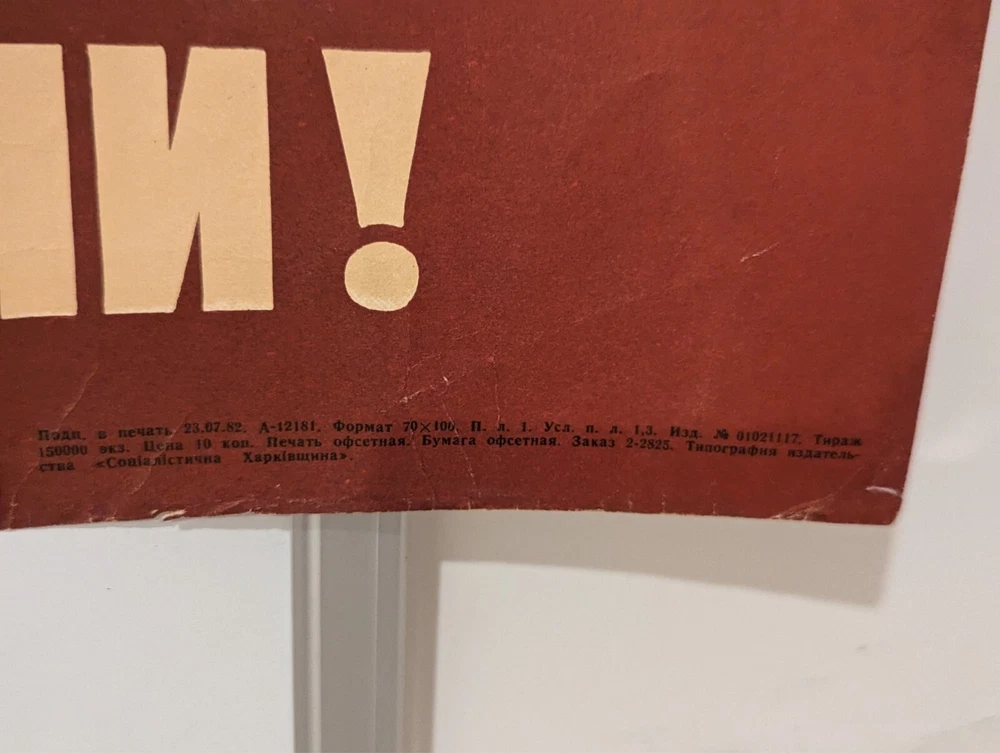Welcome to Antique Poster Shop The poster is one of the most lively and, at the same time, the most complex areas in graphic design, in art. The Soviet poster is a truly unique phenomenon, and in different years the authors of famous posters were outstanding Soviet artists, leading people of their time. The best artists of their time worked on propaganda posters, famous poets wrote slogans - thus, unique graphic schools were formed. Nowhere in the world did they teach the poster purposefully and systematically, as it was in the USSR. Rare Soviet posters today have to be searched for in different countries of the world. It's a paradox, but what was created in only a few copies and is known only to collectors is sometimes easier to find than what was produced in thousands of copies. Of the millions of campaign posters that have adorned the streets, classrooms, classrooms and hospital corridors for many decades, only a few have survived. Posters of the Soviet era are not only original works of graphic art, antiques and antique graphics, original retro gifts and interior items, but also truly historical documents Original Vintage -Soviet Ukraine- Poster SIZE – 40 / 28 INCHES OR 100 / 70 CENTIMETERS Artist V. Sachkov Year of creation 1977 Country of origin USSR; On write: Join the ranks of the Communist Party! Attention important information ////// A ttention important information //////////////////////////////////////////////////////////////////////////////////////////////////////////////////////////////////////////// Visit my store : https://www.ebay.com/str/originalfilm312/Poster/_i.html?store_cat=43231993011 In my store, all posters are very conveniently arranged by category. I combining shipping ( After selecting all posters. Write to me to send you an invoice including combined shipping . ) Will be shipped rolled in professional packaging and tracked delivery Some posters are undergoing professional restoration. But not all. If this is important for you, ask a question, this poster has been restored or not. Thank you //////////////////////////////////////////////////////////////////////////////////////////////////////////////////////////////////////////// Shipping Policy Item will be shipped immediately on the same or next business day of receiving the payment Shipping WorldWide through UKRAINE Posts Tracking number will be provided I am not responsible for any wrong or undeliverable address. Delivery to European countries usually takes about 10-17 days. Delivery to USA, CANADA , North America and other countries takes about 18-30 days. The delivery time depends on the destination, holidays, customs clearance factor and other factors.
