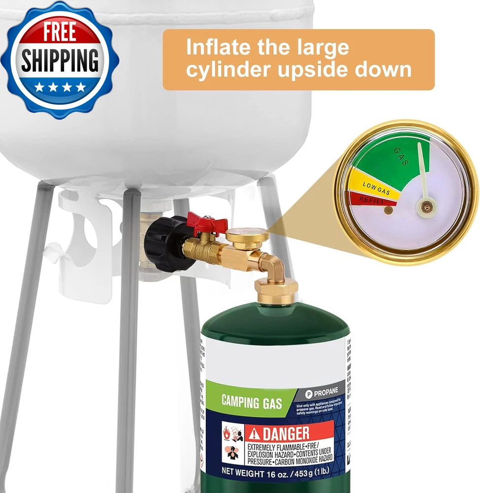 Propane Adapter 1Lb to 20Lb, QCC1 Propane Refill Elbow Adapter with Gauge and On-Off Control Valve for 1LB Propane Tank to Be Refilled Gas from 5~40 LB Propane Tank 90 Degrees Design: WADEO propane elbow refill adapter with ON/OFF control valve is easy to install and no tools required, and it with hand-wheel grip for tightening, you can easily connect your large cylinder to 1LB propane tank. Additional 1 LB Propane Bottle Cap: The 1 LB propane bottle cap is useful for your camping stoves, home applications, barbecue, propane heater or others equipments that use 1 lb propane tank. You don't need to spend extra money to buy the cap. How to Refill the Gas: Refill the 1LB camping bottle with propane gas by using a 90-degree propane filling adapter, you should turn the large propane tank upside down and place it securely in the corner of the dining table so the liquid can flow out. Upgraded With Gauge For Accurate Reading: Specially designed with a gauge at the side connect with 1lb propane tank, our propane refill adapter allows you to read and monitor the gas volume in your 1lb propane cylinder more accurately. Luminous pointer and gas level indicator make it easy to read even in the dark. Attention: Because the gas is highly flammable, you Must refill your 1 lb cylinder tank out of the door and stay away flames and sparks for safety. Product Description Function: Inflate 1 lb cylinders with large cylinder to achieve the effect of reusing disposable gas bottle. Built-in Safety Function: The built-in safety function can ensure that you will never fill the 1lb gas bottle. How to Inflate the Propane Gas: 1. Put the empty 1 lb cylinders in a freezer for several hours. 2. Put your 5-40lb propane tank upside down and attach the QCC1 connection to your propane tank. Close the 1/4'' on-off control valve. 3. Install the 1" x 20 Female throwaway cylinder thread on the 1lb tank cylinder. 4. Open the 5-40 propane tank cylinder valve and then tun on 1/4" on-off control valve. 5. When the flow of propane gas stops, please shut off the 1/4" on-off control valve and remove the 1 lb cylinder. Attention: Because the gas is highly flammable, you must refill your 1lb cylinder tank out of the door and stay away from flames and sparks. Item Weight 10.9 ounces Package Dimensions 6.18 x 2.44 x 2.2 inches Shipping Fast shipping is very important for us. Our standard US shipping service is FREE. Your order will be shipped within 2-3 business days upon full payment received. Your order will be delivered within 2-3 business days after the handling time. We only ship to the confirmed PayPal address. We reserve the right to cancel any order for any reason at any time. We are not responsible for undeliverable addresses. Returns and payment We offer a 30 days return policy from checkout winning date. We allow only PayPal as payment method FeedBack Your feedback very important to us, after you get your package and you are satisfied with our service please leave us positive feedback If you have any problem with your order / any questions please before leave any type of feedback Please visit our eBay store to check out other items for sale! Thank you for shopping at our store.