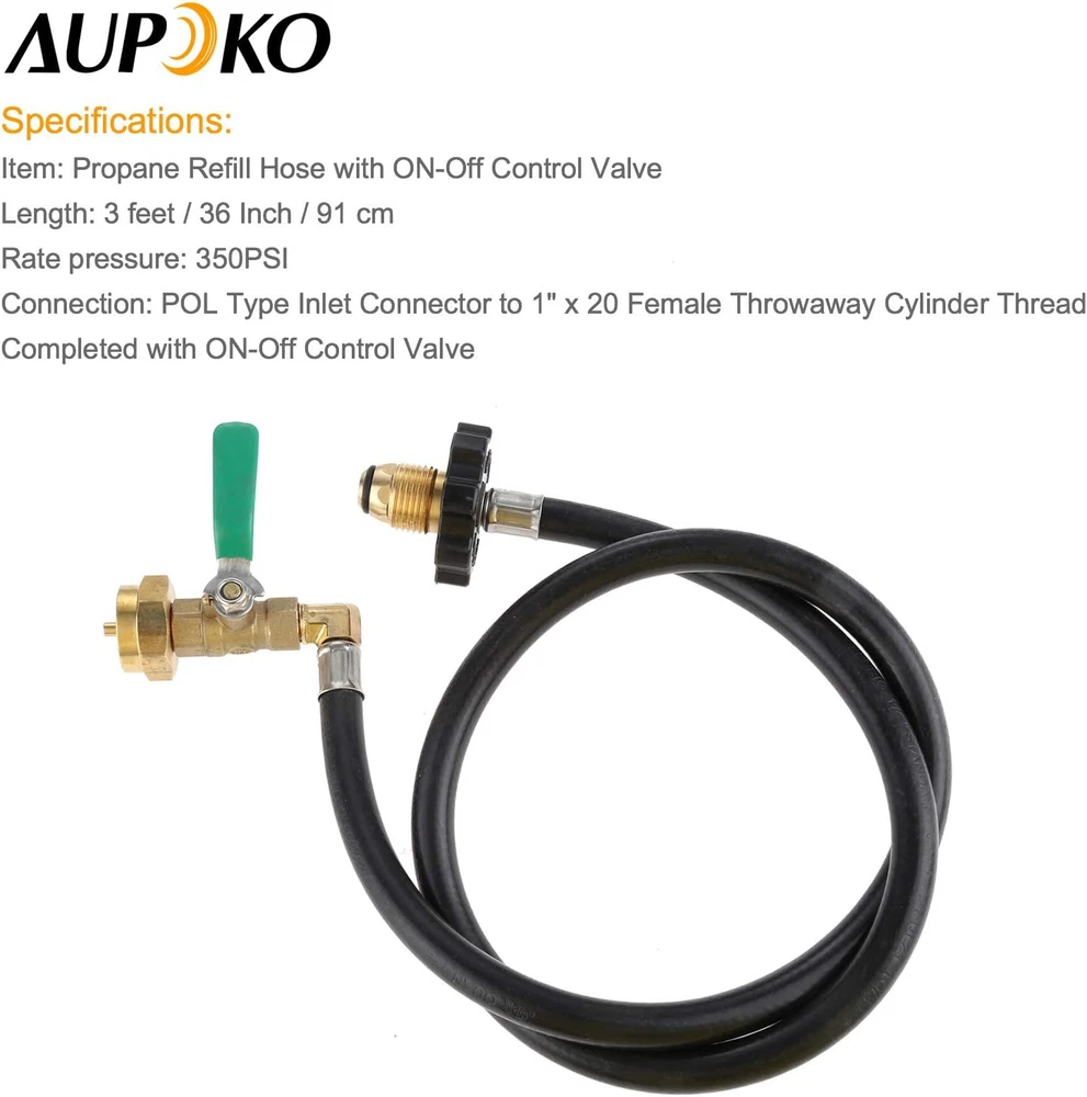 Store New Arrivals Add to Favorite View Feedback Contact Propane POL Refill Adapter Hose, 36’’ Propane Refill Hose with 1LB Tank Bottle Adapter, and On/Off Control Valve, 350PSI Rated High Pressure Propane Extension Hose Description Nominal Wall Thickness 0.5 inches Item Package Quantity 1 Batteries Required? No Maximum Pressure 350 Pound per Square Inch Color Black Material Rubber Item Weight 12.6 ounces Batteries Included? No Item Length 36 Inches Outside Diameter 1 Inches Product Dimensions 36"L x 36"W ✈ Wide Compatibility ---- This propane bottle refill adapter hose with POL Type 1LB propane refill adapter for old tank can connect 20-50Lb propane tank directly, with this adapter hose you can use it on 20Lb or larger tanks that will last you long period of time, convenient for those with larger tanks. Fits for heater, camp stove, portable grill, tabletop grill, and more. Great for camping, tailgating, heating needs or having an outdoor cookout. ✈ Premium Quality ---- This 1 pound propane tank refill adapter kit comes with quality rubber to ensure you safe leakage free operation while providing excellent weather resistance, the one pound bottle tank adapter connection of this propane refill hose is made of solid brass to ensure secure and durable for long-lasting to use. ✈ Easy To Install ---- Propane refill tool is easy and quick attachment for easier installation, can easily connect your big Cylinder to the small 1LB propane tank without move or carry. Please find the installation instruction in the following description. ✈ Note ---- If you want to connect it with your 1 pound regulator, make sure you remove the regulator on RV, if your grill connects a standard POL regulator with hose 3/8" female flare nuts, so just take off the regulator hose and the 1LB adapter on our hose then connect your RV. ✈1 Year Warranty ---- Order this 1LB propane refill adapter hose from Aupoko, we can provide 12 months free-worry warranty, should be there any question, please feel free to . Product Description Specifications Item: Propane Refill Hose with ON-Off Control Valve Length: 3 feet / 36 Inch / 91 cm Rate pressure: 350PSI Connection: POL Connector to 1" x 20 Female Throwaway Cylinder Thread Completed with ON-Off Control Valve Features This propane bottle refill adapter hose With a 36 inch Long Propane Hose and Control Valve, Replace the traditional refill adapter Using the traditional propane refill adapter you have to carry the bottle and put down which unsafe and hard to control the gas. With a High Pressure Designed Control Valve You Can Easy Open and Close the Refill Process. Easy Propane Refill Tool. Package Included 1 Pc x Propane Refill Hose with ON-Off Control Valve.(POL Type Inlet for Old Tank) This 1 pound propane tank refill adapter kit comes with quality rubber to ensure you safe leakage free operation while providing excellent weather resistance. Propane refill tool is easy and quick attachment for easier installation, can easily connect your big Cylinder to the small 1LB propane tank without move or carry. One pound propane tank on one side with on-off control valve. POL standard 20-50 lb propane tank connector is used on the other side. ABOUT US We offer the best prices around on high quality products. Our E-store includes media such as books, movies, music and games while offering electronics, toys, sporting apparel, clothing, tools, general home, garden items and more. SHIPPING We are always working hard to ensure your package arrives as soon as possible. Please understand that some factors like weather, high postal traffic, and the performance of shipping companies are outside of our control. We offer free shipping to the lower 48 states and ship within 2 business days of payment, usually sooner. We do not accept P.O. Boxes. Please provide a physical address. For shipping outside of the continental USA, we only use eBay's Global Shipping Program.The item is shipped to KY and then sent to the rest of the world. International customers are responsible for all duties and taxes. Continue to check out in order to calculate costs for shipping the item to your country. Messages regarding eBay's Global Shipping Program MUST be directed at eBay EXCLUSIVELY. RETURNS We offer a 30-Day Return Policy on items which you are not completely satisfied with. You have the option for a full-refund or an exchange of the item. No returns are available on items shipped outside of the USA. PAYMENT We accept PayPal. CONTACT US This page content is yet to come Please ad us to your favorite seller and visit again later Thank You CUSTOMER SATISFACTION We try our very best to make sure every customer is completely satisfied. If there's a problem, message us! We're happy to help. WE ACCEPT Copyright © 2021 AutoDS. | All Rights Reserved