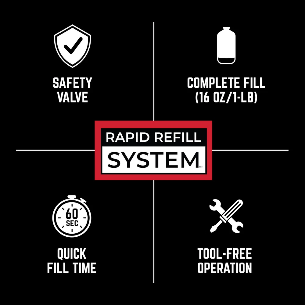 Introducing the Fuel Keg refill kit, a revolutionary product designed to transform the way you power your outdoor adventures! This innovative kit, specifically crafted to be paired with the Fuel Keg refillable 1lb propane tank, brings you a trifecta of benefits: saving money, conservation, and ease of use. Say goodbye to expensive disposable propane canisters and embrace the smart choice of refilling your tanks with the Fuel Keg refill kit. Not only will you keep more cash in your wallet, but you'll also contribute to environmental conservation by reducing waste and minimizing your carbon footprint. With its user-friendly design, the Fuel Keg refill kit ensures a seamless and safe refilling experience, enabling you to effortlessly extend your outdoor adventures while making a positive impact on your budget and the planet. Get ready to unlock the potential of sustainable fueling with the Fuel Keg refill kit! FOR USE WITH FUEL KEG REFILLABLE PROPANE TANK ONLY: When choosing the Fuel Keg Propane Refill Kit, it is essential to note that this innovative kit is exclusively designed for the Fuel Keg Refillable Propane Tank (F200048). This means you cannot use the kit to refill standard 1 lb. propane cylinders. The Fuel Keg Refill Kit has been meticulously engineered to work seamlessly with Fuel Keg’s proprietary tanks, ensuring optimal performance and safety during the refilling process. FILLS IN APPROXIMATELY 60 SECONDS: The conveniently engineered design of the Fuel Keg Propane Tank Refill Kit allows you to refill your Fuel Keg in approximately 60 seconds when following the standard operating procedures. INCLUDES TANK STABILIZING FEET: The Fuel Keg Propane Tank Refill Kit includes three sturdy tank feet, designed to offer unmatched stability and convenience. These multi-use tank feet can be attached to the safety collar on top of your 20 lb. cylinder for a secure refill process. Alternatively, attach them to the bottom of the cylinder to ensure increased stability when the tank is not in use. TOOL-FREE REFILLING: Fuel Keg is revolutionizing the way you handle propane with its ingeniously designed refill valve, known as “The Tap.” This user-friendly valve requires no additional tools and only needs hand tightening, ensuring a hassle-free refilling process. Whether you’re at home or out in the wilderness, The Tap’s intuitive design allows you to quickly and safely refill your Fuel Keg Refillable Propane Tank without the need for wrenches or other equipment. FOR OUTDOOR USE ONLY: When using the Fuel Keg Propane Tank Refill Kit, it is important to be in a well-ventilated area.