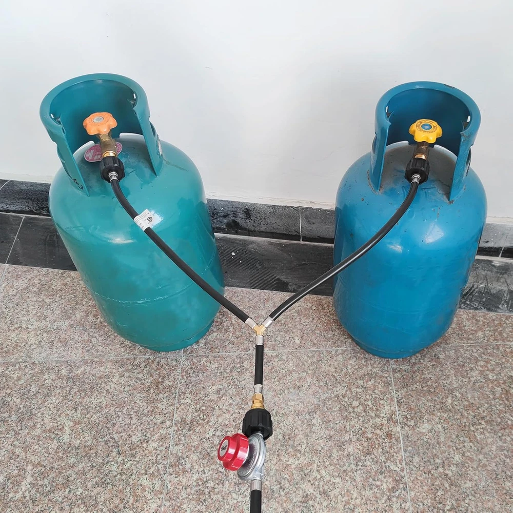 Universal Standard Specifications : Inlet is ACME nut 2 way QCC1/Type1 Tank propane gas fittings, Outlet is QCC1 Nut propane gas fitting adapter. Converter connected to 2 Lp propane gas tank hook up at the same time Features and Benefits: Y- Splitter propane hose converter adapter has CSA certified ,The lengths of the hoses on both sides of the splitter are 15.75 inch (400 mm ) respectively; The outlet branch pipe long 4.5 inch (100 mm); the maximum working pressure is 350 PSI; and it is suitable for 5 lb - 40 lb tanks. One device can connect two propane tanks at the same time. Outstanding Design : the outlet branch fitting is end outer QCC1/Typ1 male thread with inner POL female therad fitting adapter; which can be used to connect POL valve and QCC1 connector propane hose regulator Premium Quality: the dual propane tank connection kit is made of high-quality rubber, and 2 way splitter adapters are made of solid brass,built-in over-current and over-heat protection design; easy installation ,noot tools you can connect two propane tank equipment at the same time ; which can extend the use time. Don't worry that the propane will be used up quickly during use, and the operation is simple and convenient Wide range of applications: suitable for propane system RV trailers, fishing gear, turkey fryers, barbecues, lanterns, heaters, camping stoves, portable barbecues, desktop barbecues, camping stove,outdoor propane burner gas cooker, forge burner, heating needs or outdoor barbecues, etc