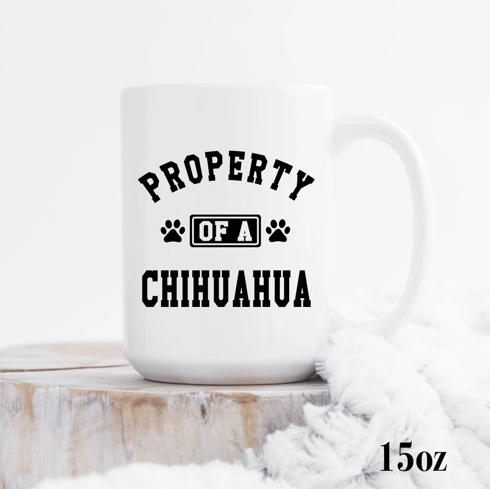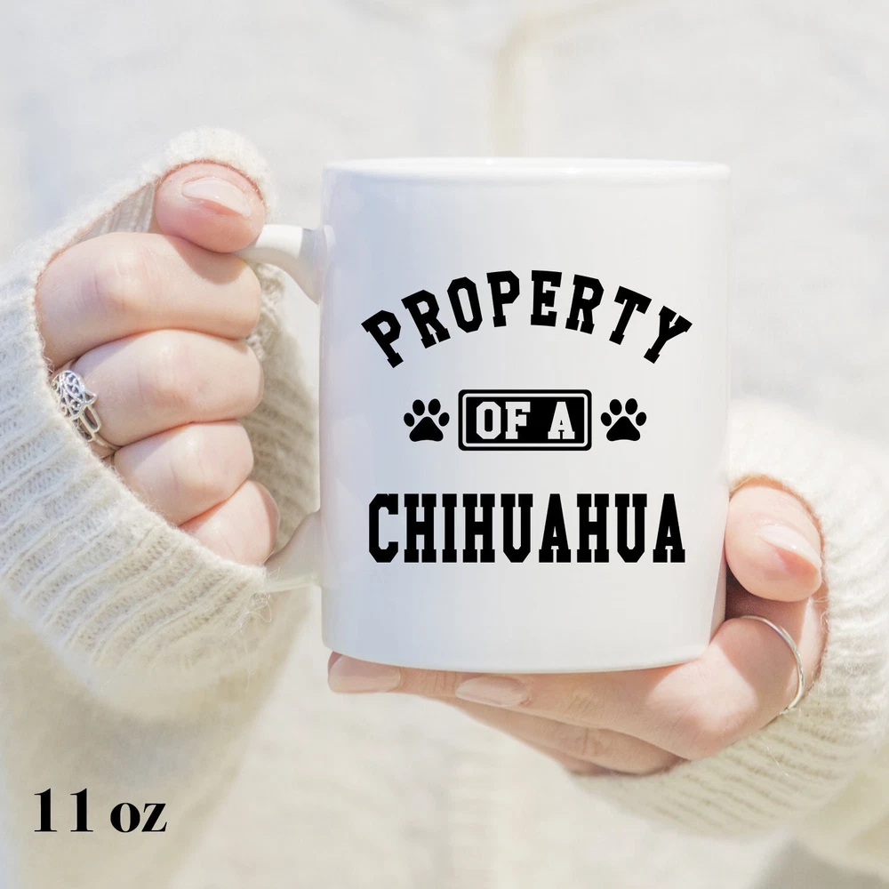 Property Of A Chihuahua Mug Chihuahua Mug Chihuahua Coffee Mug Chihuahua Lover Product Details.. This high quality 11oz. ceramic white mug has a premium hard coat that provides crisp and vibrant color reproduction sure to last for years. Perfect for all hot & cold beverages. The highest quality printing possible is used. It will never fade no matter how many times you wash it. Material: 100% Ceramic. Print both sides. Dishwasher and Microwave Safe. High Gloss + Premium White Finish. Printed in the U.S.A. Personalized & Custom. We support personalized and custom mug to add custom, when placing an order, you can add notes to the "order note" in shipping address section. Also you can contact us directly via message. Shipping Info. Ready to ship in 1 to 2 business days, All products are made-to-order and proudly printed in the United States. Shipped by USPS and DHL, You will receive your order in 5-7 days. Replace & Refund. All products are defective during shipping broken, chipped will be replaced free of charge. You are not satisfied with the product, we will refund 100% money to you. If any other issues arise, please do not hesitate to message, we would be more than happy to assist you.