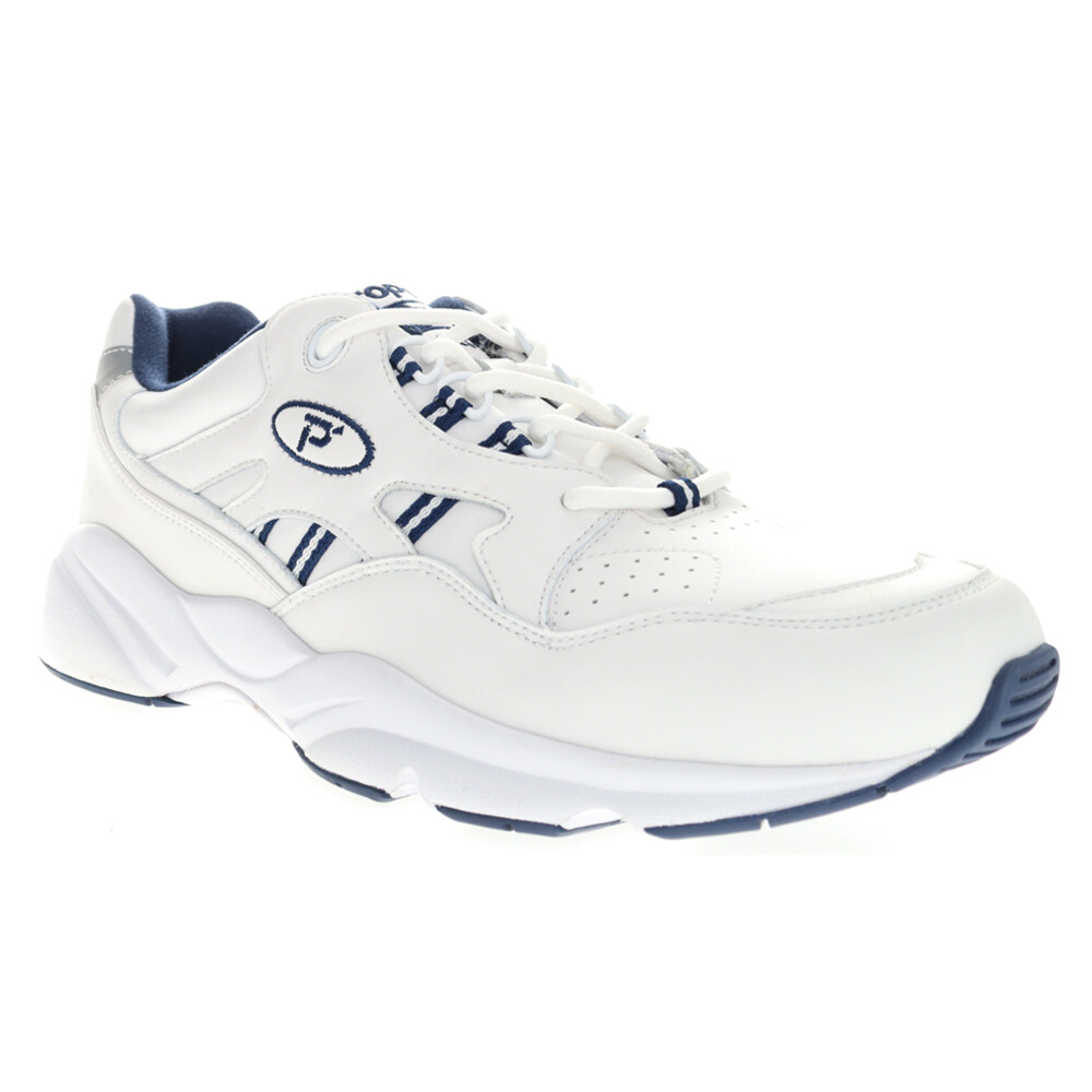 Stability Walker Walking Shoes Product Details Leather upper Speed lacing closure system Rigid heel counter with removable PU footbed Arch supporting EVA midsole Medicare Approved One of Propet's most popular models, this walking shoe is designed with a wider forefoot and heel base, for the ultimate in stability. The PU insole features a heel pad and cushioning ridges for superior comfort. Additional Details Color: White Occasion: Casual Gender: Mens Age: Adult Brand: Propet
