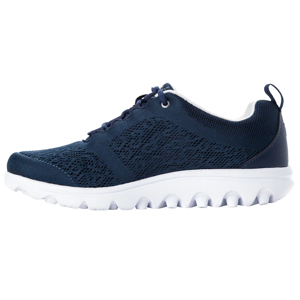 TravelActiv Lace up Sneakers W5102NAV Product Details Engineered mesh upper with mesh lining Cushioned EVA insole Lightweight TravelTek EVA outsole for durability and traction EVA insole The lightweight TravelTek outsole only available from Propet and ready for your active lifestyle. This flexible shoe is a great travel companion, easy to pack, wear and accessorize. Additional Details Color: Blue Occasion: Casual Gender: Womens Age: Adult Brand: Propet