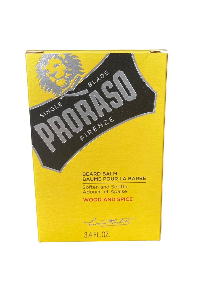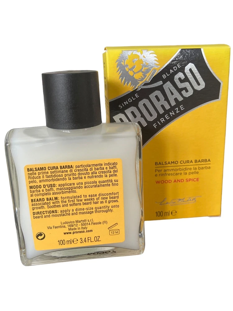 PRORASO Single Blade Wood and Spice Beard & Mustache Balm, Aftercare Treatment.