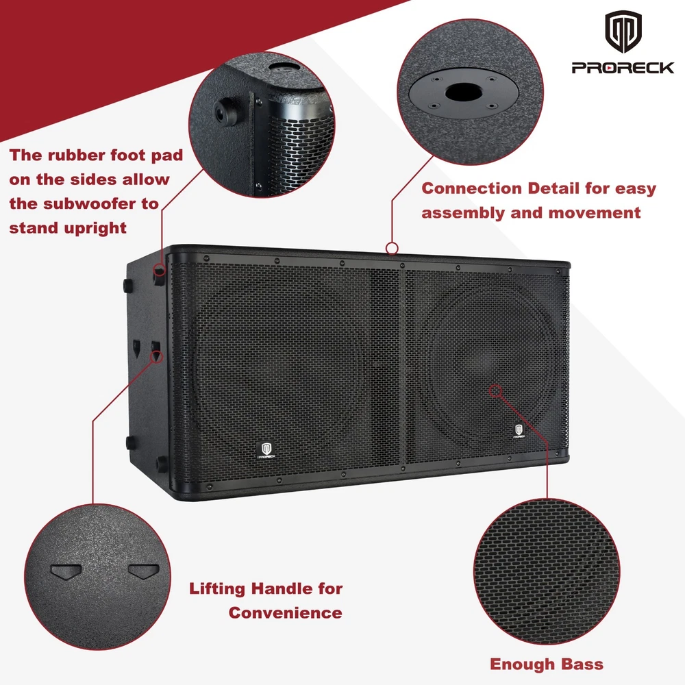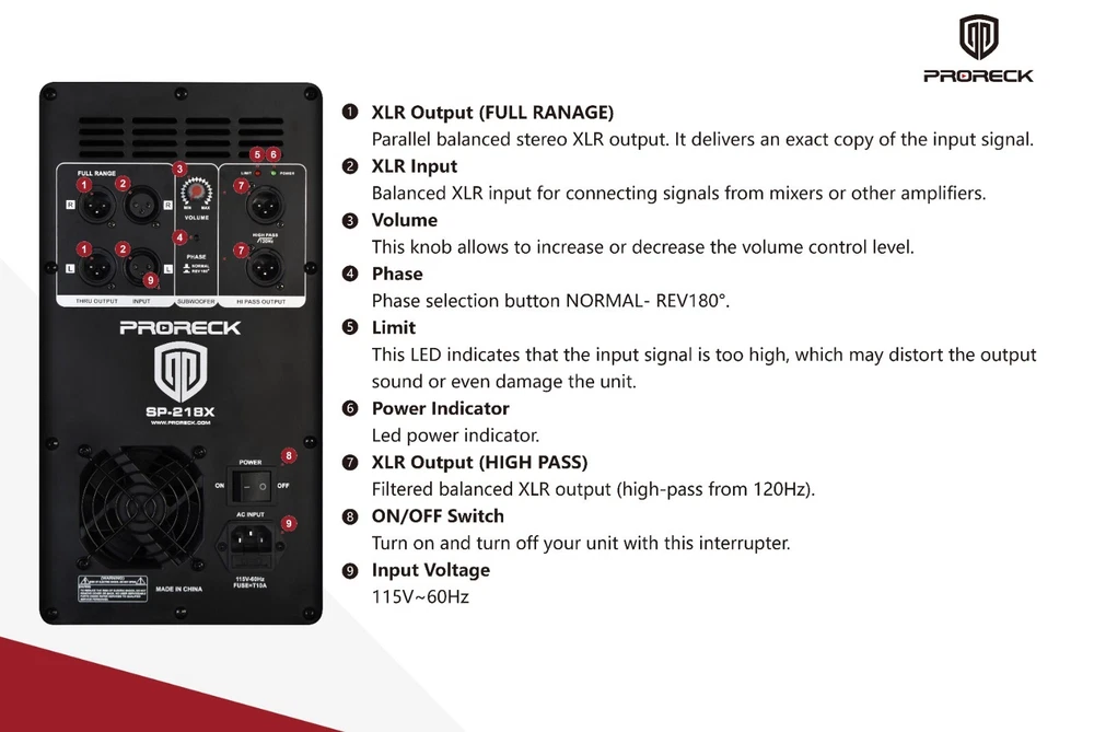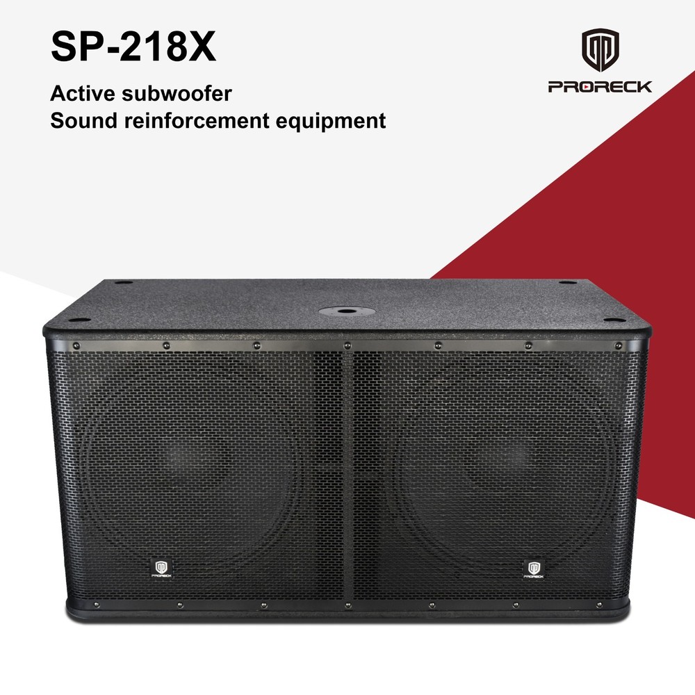 P owered S ubwoofer : Powerful 5 000W peak with low-frequency driver for sound and bass reinforcement. It has 1000 Watts RMS/ 5 000 Watts Peak; dual 18 inch woofer with 8 0oz magnet and 3 " voice coil. Electronic crossover from 35Hz to 120Hz, XLR high pass output from 120Hz to 20KHz. XLR I nput and Output: The system has XLR input and output jacks, which can easily for connecting signals from mixers or other amplifiers. It also has phase selection button that can select phase from normal to 180° to run multiple subwoofers . P owerful Subwoofer with Side Handle Design : Built-in CLass-D amplifier and has 2 woofers, which can ensure deep and thrilling stereo sound. Two side handles make it easy to transport and carry . Item w eight: 159.2 lbs; Item d imension: 27 ” x 27.3 ” x 49.2 ” Better Material to Reduce the Resonance: Super solid housing is made of plywood , which reduces the resonance generated by sound compared to plastic speaker, resulting in better sound quality and achieve distortion-free and accurate response. Wild Range of Usage: The SP-218X can transport easily, which is sutiable for parties, DJ gigs , weddings, meetings, speeches, churches, gymnastics, conferences, home theaters, etc.