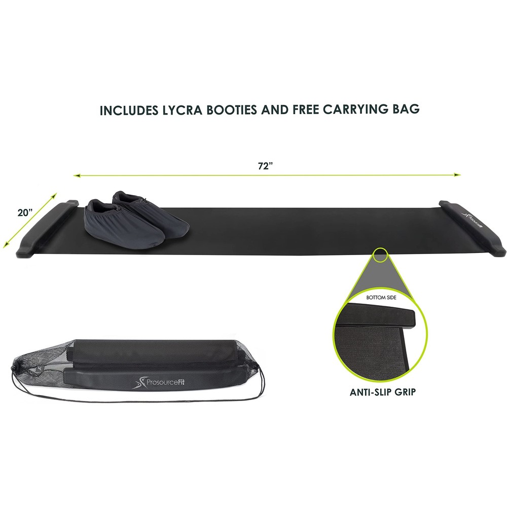 BOOTIES & BAG – Includes lycra booties to cover your shoes for smooth sliding and a mesh carrying bag so you can roll it up for storage and travel BALANCE & ATHLETIC TRAINING – Sliding & exercising on the board challenges your balance and trains your legs/core for sports like skating & hockey LOW IMPACT, HIGH INTENSITY – a great way to train with high intensity and boost your heart rate without having to jump or put stress on your joints 72”x20” – The long 6’ surface is perfect for a variety of users to complete full strides and core exercises for an effective workout SMOOTH SLIDING W/NON-SLIP BASE – A slick surface makes sliding easy & smooth, while a non-slip PVC bottom prevents the mat from sliding on floors