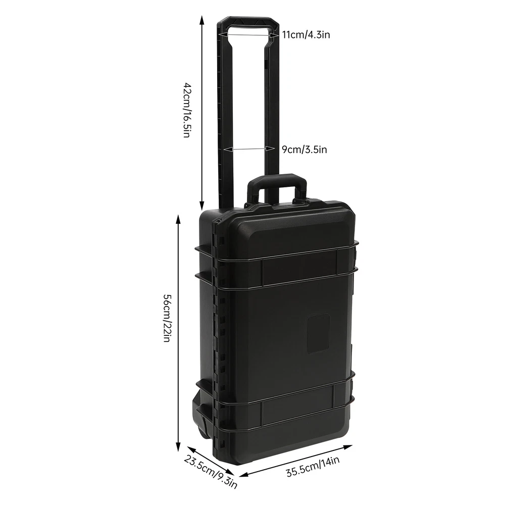 Specifications Color: Black Pattern: Solid Style: Modern Shape: Rectangular Waterproof Level: Ip67 Type: Storage Box Closure Type: Press Lock Target Audience: Unisex Adults Process: Injection Molding Material: Pp, Abs, 304 Stainless Steel Care Instructions: Wipe with a Wet Cloth Load-bearing Capacity: 50kg/110 Lbs Applicable Temperature: -10-45℃/14-113℉ Pre-cut Size: 1.5*1.5cm/0.6*0.6inch Padlockable Hole Diameter: 7mm/0.27inch Pull Rod Length: 42cm/16.5inch Case Size: 35.5*23.5*56cm/14*9.3*22inch Package Size: 57*24.5*37cm/22.44*9.64*14.56inch Net Weight: 5.3kg/11.68 Lbs Gross Weight: 6.5kg/14.33 Lbs Package Included 1* Protective Camera Case 3* Checkered Foams 1* Flat-padded Foam 1* Top Egg Crate Layer Foam Protective Camera Case Camera Storage Box Load-bearing Capacity 50kg/110 Lbs Specifications Color: Black Pattern: Solid Style: Modern Shape: Rectangular Waterproof Level: Ip67 Type: Storage Box Closure Type: Press Lock Target Audience: Unisex Adults Process: Injection Molding Material: Pp, Abs, 304 Stainless Steel Care Instructions: Wipe with a Wet Cloth Load-bearing Capacity: 50kg/110 Lbs Applicable Temperature: -10-45℃/14-113℉ Pre-cut Size: 1.5*1.5cm/0.6*0.6inch Padlockable Hole Diameter: 7mm/0.27inch Pull Rod Length: 42cm/16.5inch Case Size: 35.5*23.5*56cm/14*9.3*22inch Package Size: 57*24.5*37cm/22.44*9.64*14.56inch Net Weight: 5.3kg/11.68 Lbs Gross Weight: 6.5kg/14.33 Lbs Package Included 1* Protective Camera Case 3* Checkered Foams 1* Flat-padded Foam 1* Top Egg Crate Layer Foam Description If You Are Looking for an Case to Accommodate Your Valuable Equipment, Our Protective Case Is Exactly What You Need. It Will Keep Your Watches, Cameras, Expensive Digital Equipment, and Other Valuables Organized, Safe, and Gracefully Displayed Most Charmingly . the Soft Sponge Lining and Impact-resistant Pp&Abs Housing Will Give Your Valuables Great Protection. Key Features Strong and Reliable: the Case Adopts Premium Pp and Abs Materials with the Injection Molding Process, Featuring Outstanding Impact Resistance , Water Resistance , and High Strength. the 304 Stainless Steel Chains Improve the Linkage Between the Upper and Lower Housing . Both Make the Case Support up to 110 Lbs, so You Can Use It with Confidence. Protect Your Valuables: the Sturdy Housing, Soft and Comfortable Sponge Lining, and Top Lid with Wavy Sponge Liner Can Effectively Reduce Vibration During Transportation, Protect Your Valuables from Scratching, and Give Them Reliable Protection. Ip67 Waterproof & Dustproof : Its Ip67 Grade Waterproof Allows for Indoor&Outdoor Uses and a Long Service Life. t he Sealing Rubber Ring Can Prevent Water, Dust, Dirt, and Other Foreign Matters from Entering. so You Can Simply Wipe the Dirt from This Product with a Wet Cloth. Innovative Design: the Innovative Pressure Relief Valve Allows the Case to Quickly Balance the Internal and External Air Pressures, Ensuring a Smooth&Safe Opening of the Case When Traveling at Different Altitudes. Ideal Gift : Thanks to Its Generous Appearance with a Rectangular Frame and Arc Design and Excellent Performance, This Protective Case Is a Great Gift for Family, Friends, Collectors, Travelers, and Yourself on Various Holidays. Diy Operation: the 3 Layers of Fully Customizable Cubed Foam with Each Having 0.6*0.6 Inches Pre-cut Size Allow You to Diy Shapes Suitable for Your Valuables. Easy to Carry: with Two Directional Pulleys, a Pull Rod (16.5" in Length) with a Snap Horizontal Lock Buckle, and Two Soft Handles on the Top and Side of the Case, You Can Easily and Comfortably Move This Case. Considerate Design: the Pp Wheel Sleeves Can 180° Better Protect the Wheels. the Abs Backboard Can Avoid Scratching Your Case When Being Placed on the Ground. and You Can Add Connector Inside the Case to Install Hardware Panels for Your Specific Usage. Independent Package: It Is Packaged in a Plastic Bag to Avoid Getting Dirty During Transportation. Buy with Confidence: We Have Been Working Hard to Provide Better Service and Quality for Our Customers, Which Is Our Goal. If There Is Any Problem with Our Products, Please Contact Us in Time. Details Humanized Latches: the Locks Adopt a Pressure-based Physical Principle to Enhance Their Service Life, Ensure Convenient Pressing, and Firmly Secure the Case so That It Cannot Be Opened Without Human Intervention. Two Padlockable Holes: the Two Pad-lockable Holes of 0.27" in Diameter Allow You to Add Combination Locks(Not Included) to Improve Its Safety and Prevent Theft. Round Corners: the Round Corners Can Better Care for Your Skin Without Hurting Your Hands and Allow for Easy Cleaning. Application It Is Suitable for Storing Your Camera Equipment, Lenses, Computers, Watches, Digital Communication Products, Electronics, Tools, and Other Valuables. Operation Method of Checkerd Sponge Draw a Shape with a Pen(Not Included) or Directly Press out the Shape. Tear out Small Squares. Tear out the Desired Shape. Modify the Shape Properly. Notes Computers/Watches/Laptops Are Not Included. This Product Is a Carry Case with Sponges Only. Please Allow the Slight Color Difference Caused by the Shooting Light and 1-3cm Error Due to Manual Measurement, and Make Sure You Do Not Mind Before You Order. Payment Delivery details Terms of sales About us Contact us Payment We accept ebay payment 。 Fees such as import duties, taxes are not included in the item price or shipping costs. These charges are the buyer's responsibility. Delivery details Shipping: 2-9 working days to: USA Terms of sales We maintain high standards of excellence and strive for hundred percent customer satisfaction. Feedback is very important to us. We hope that you contact us immediately before you give neutral or negative feedback, so that we can address your concerns. It is impossible to address issues if we do not know about them! About us Your satis faction is our ultimate goal. We work hard to earn your trust and future business. Our certified technicians have t