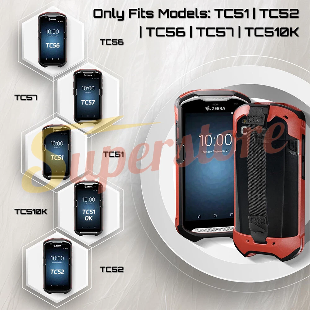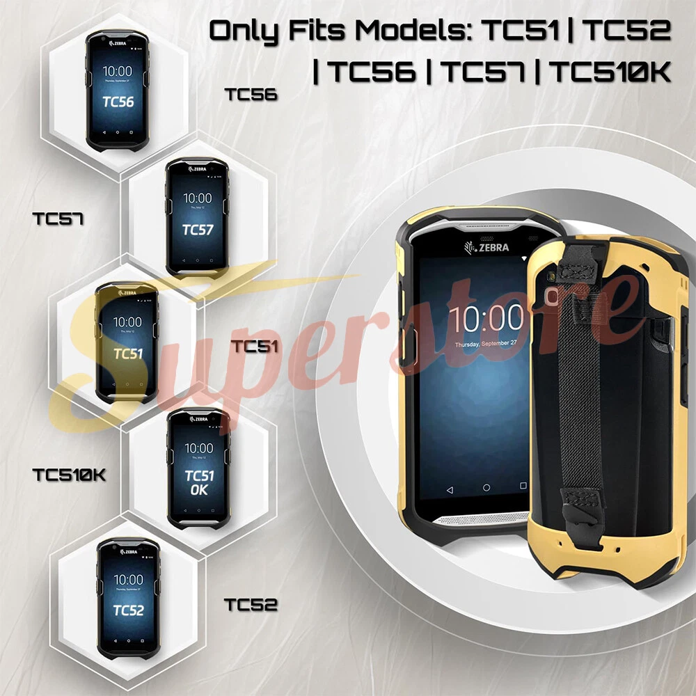 TC51 TC52 TC56 TC57 TC510K Case with Hand Strap - Protective & Ergonomic for Zebra Handheld Barcode Scanners SG-TC5X-EXO1-01 SG-TC5X-EXONHS-01 About this item Custom-Fit Durability: Engineered for compatibility with TC51, TC52, TC56, TC57, and TC510K devices, this rugged boot case (SG-TC5X-EXO1-01) ensures maximum protection with a snug, secure fit for your handheld barcode scanner. Ergonomic Hand Strap: Offers a comfortable grip for extended use, reducing fatigue and enhancing device handling, ensuring your scanner is always ready for action. The non-slip hand strap boosts security, making it an essential accessory for Zebra TC51 TC52 TC56 TC57 TC510K device. Enhanced Device Safety: Robust construction guards against drops and impacts. Coupled with the (SG-TC5X-EXONHS-01) hand strap, it provides comprehensive protection and additional security for your handheld barcode scanner. Versatile & User-Friendly: This case allows for the simple addition of trigger handles (sold separately), enhancing the practicality of your TC5X device for daily tasks, significantly boosting work efficiency. Sleek Design in Multiple Colors: Available in 8 vibrant colors, this protective case cover offers personalization along with its professional look, meeting both the style and functional needs of your workspace. Trigger Handle for Zebra Symbol TC51 TC510K TC52 TC56 TC57 Handheld Barcode Scanner Mobile Computer - P/N: TRG-TC51-SNP1-01 (Requires Protective Case for Use; Case PN: SG-TC5X-EXO1/EXONHS-01) About this item Compatibility Requirement: Important - TC5X series devices (TC51, TC510K, TC52, TC56, TC57) require a protective case (SG-TC5X-EXO1-01 or SG-TC5X-EXONHS-01) for this handle to attach. Lightweight and Comfortable Trigger: Each press of the trigger is exceptionally light and comfortable, ensuring efficiency and comfort during use. This feature greatly enhances your experience, making it ideal for extended scanning tasks. Ergonomic Design for Enhanced Comfort: Ergonomically crafted to fit the natural curve of your hand, this handle ensures a comfortable, secure grip, boosting scanning speed and reducing fatigue during prolonged use. Extended Use Compatibility: This handle is designed for a flawless fit with the TC5X series holster (SG-TC51-HLSTR1-01). Please note, the holster is sold separately. Included in Your Purchase: You'll receive a single trigger handle in the package. Please be aware, the protective case, holster, and device are sold separately.