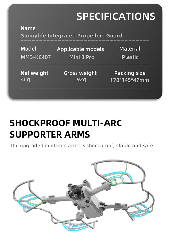 MPN: Does Not Apply UPC: Does not apply Packaging dimensions: 178 x 145 x 47 mm Net weight: 46g Type: Propeller Guard Applicable models: For DJI Mini 3 Pro Material: Plastic Brand: Unbranded gtin13: Does not apply