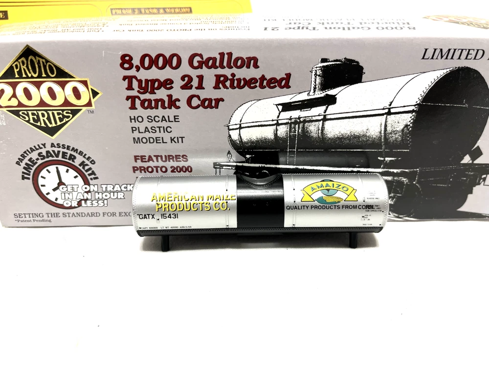 New. Proto 2000 Series 8,000 Gallon Type 21 Riveted Tank Car American Maize Products Co. #15431. Everything is still taped inside to box, I did not want to break that. Instructions are a copy made. Please look closely at all the pictures. I started selling on eBay in 1997, that account is now DGD_Surplus and is my full time business account. This account which uses my original user name is my personal account. I use it to sell my hobby and personal items in my spare time. I hope you find something you like. If you have a problem with something I have sold I hope you reach out to me prior to leaving feedback as it is my goal for my customers to be satisfied with their transaction. Dan Batson