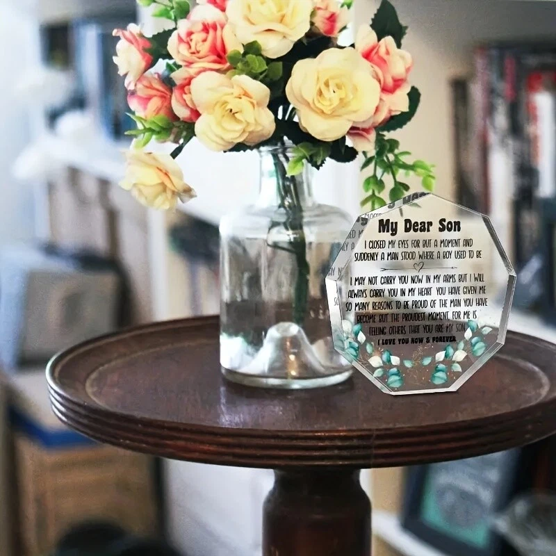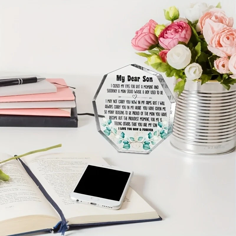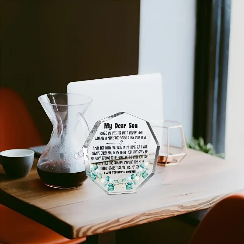 Proud of You Clear Acrylic Plaque for Son Home Office Tabletop Sign Holiday Gift