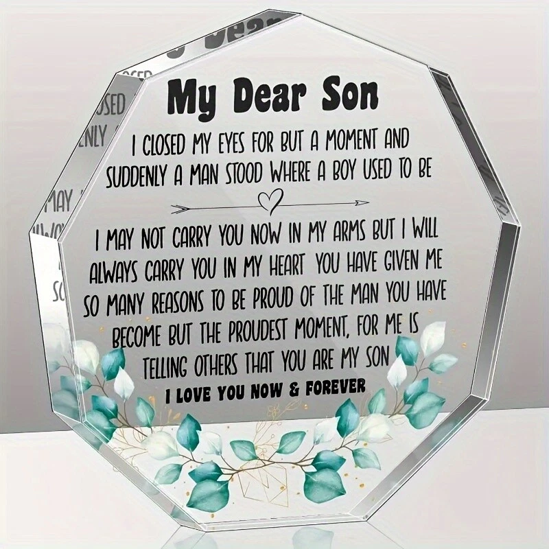 UPC:Does not applyTheme:Christmas, Thanksgiving, Other Topics, Wedding, BirthdayMaterial:AcrylicStyle:ContemporaryShape:NonagonCustomized:NoColor:ClearMPN:Does not applyBrand:UnbrandedFeatures:Indoor, Tabletop, WaterproofSubject:MenRoom:Any Room, Bedroom, Indoor, Living Room, Office, Study, SunroomCountry/Region of Manufacture:UnknownSize:SmallPattern:Lettersgtin13:Does not applyDepartment:Kids, Teens, AdultsMounting:Free StandingType:Plaque