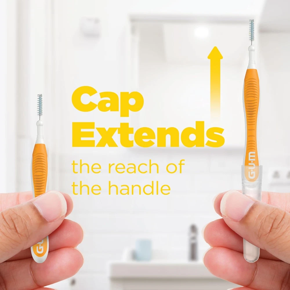 The information below is per-pack only DEEP CLEANING : GUM Proxabrush Go-Betweens feature soft bristles that slide between the teeth for a deep-cleaning alternative to floss that removes plaque that can't be reached with tooth brushing alone. ULTRA TIGHT : Don't let tight teeth keep you from the benefits of between-teeth cleaning. GUM Ultra Tight interdental brush picks are specifically crafted to easily & effectively clean within narrow dental spaces. COMPACT & REUSABLE : GUM dental picks are perfect for carrying in your purse or travel kit when you're on the go. Each floss pick comes with a protective travel cap and bristles that are treated with a hygienic solution for up to ten days of use. PERFECT FOR BRACES & APPLIANCES : Our floss brushes are clinically designed with nylon-coated wire that comfortably cleans around braces, fixtures, implants, and other dental devices without causing scratching or galvanic shock. HEALTHY STARTS HERE : Research continues to show the connection between oral health and overall health. The GUM brand is committed to providing innovative products for between-teeth cleaning to help everyone achieve their healthiest life possible. Go beyond brushing with GUM Proxabrush Go-Betweens. Between-teeth cleaning is essential for removing plaque from hard-to-reach areas that are missed by brushing alone....But tight teeth, difficulty gripping floss, and a simple lack of time prevent many of us from flossing as often as we should. Proxabrush Go-Betweens Interdental Cleaners are clinically designed by dental professionals to offer a quick, easy, and effective alternative to flossing. Our Ultra Tight reusable floss brushes are specifically made to remove plaque and food particles from tighter, more narrow interdental spaces, and are the perfect braces cleaner. Each floss brush features coated bristles and a breathable travel cap that allows for up to ten days of use. With GUM Proxabrush Go-Betweens, cleaning the hard-to-reach areas in your mouth has never been easier. A non-slip rubber handle and bendable neck make it easy to maneuver to the back of the mouth while nylon-coated wire cleans around, bridges, implants, and other dental devices without the risk of scratching or galvanic shock. Features : ● Designed for extra tight interdental spaces ● Triangular bristles for 25% more effective plaque removal* ● Nylon coated wire is a perfect braces brush for cleaning. ● Hygienic coated bristles and a breathable travel cap allow 10 days of use ● Non-slip rubber handle for easy grip ● Bendable neck for further reach Our dental brushes make it easy to carry a confident smile with you wherever you go. Different from flosser picks, each interdental brush features a compact, portable size that fits easily into purses, pockets, and travel kits for healthier gums, cleaner teeth, and fresher breath - anytime, anywhere. *vs DOF-0001