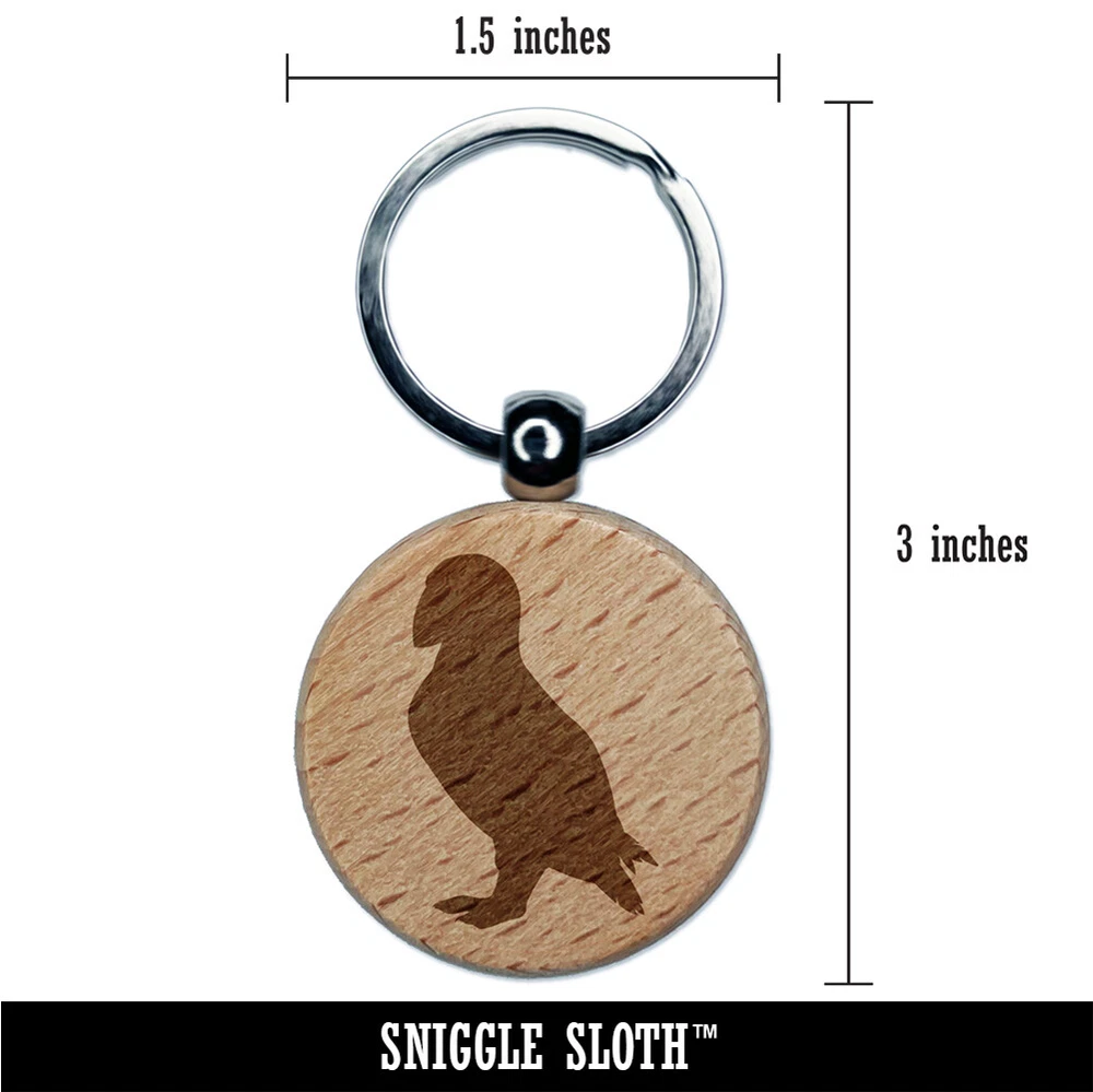 Puffin Bird Solid Engraved Wood Round Keychain Tag Charm