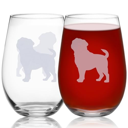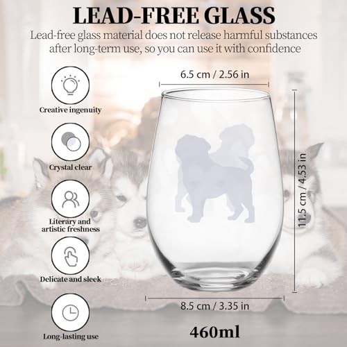 Pug Stemless Wine Glass Set of 2 for Birthdays Parties Glassware