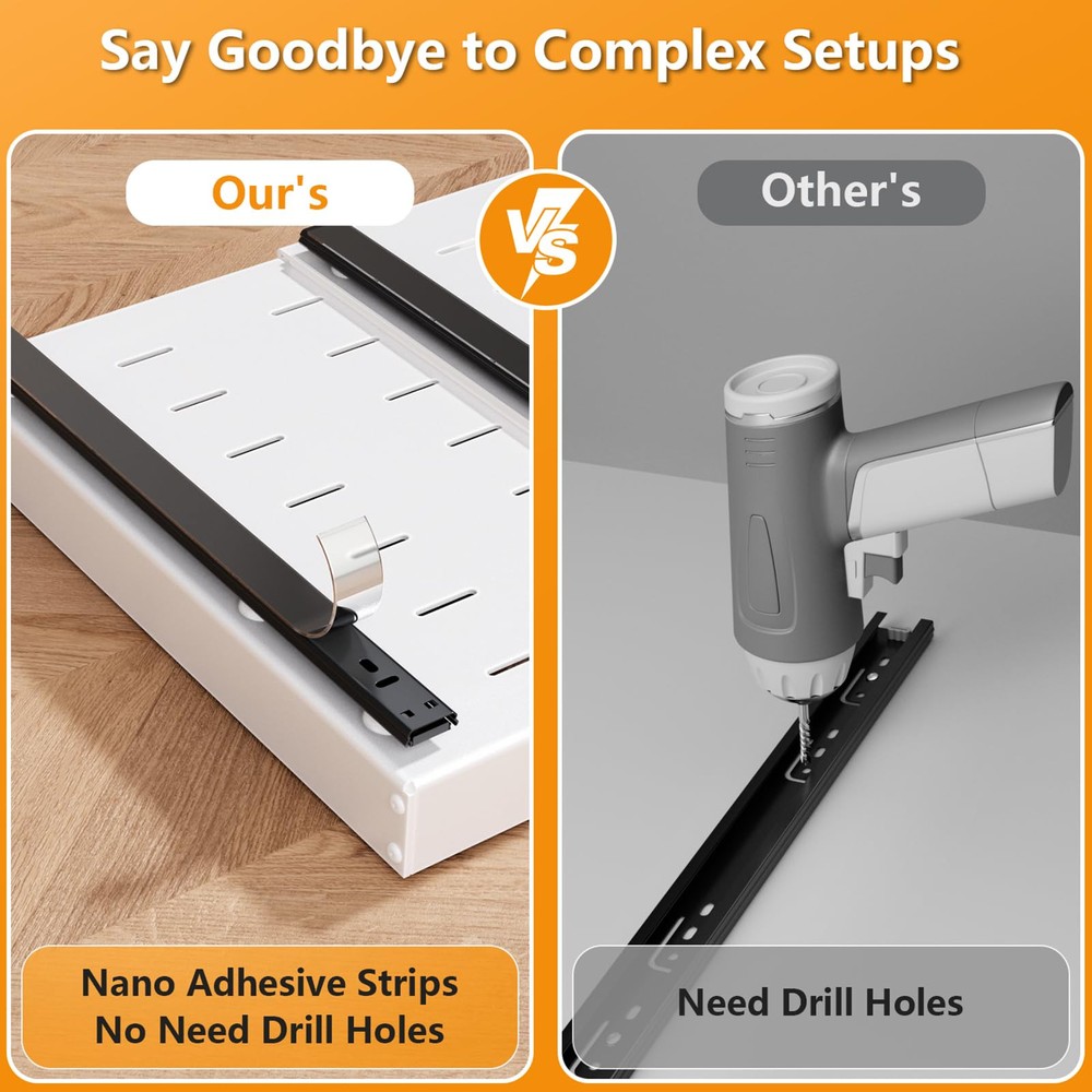 Important Note: pull out cabinet organizer is only suitable for cabinets with a width exceeding 13", and a depth exceeding 22". Please confirm the dimensions of your cabinet before purchase. Please note: our pull out drawers for cabinets will not fit cabinets with frame Upgraded 3 Silent Damping Guide Rails: Engineered from premium-grade metal with precision damping guide rails, tested for over 40,000 times of opening and closing. Our kitchen cabinet organizer address the shortcomings of traditional 2-rail drawers, such as weak load-bearing capacity, sag deformation, and difficulty in pulling them out. Our expandable drawer organizer offer superior bearing capacity, extend fully, allowing easy access, noiseless, stable, smooth and quiet operation Maximize Every inch of Space: Our deep drawer organizer with 21" deepth can better optimize cabinet real estate, providing easy access to items buried in the depths, maximize and make full use of the deep inside space in the kitchen, pantry, bathroom, living room, closet etc. Keep your home clean and tidy while maximizing storage potential and providing a sleek and seamless look with our space-saving solution. Bid farewell to wasted space Adjustable Design: Our sliding drawers for cabinets adopt a width adjustable design with an extendable range (12.6"-21.3") to fit different sizes of cabinets, offering tailored storage solutions for pots, pans, lids, bowls, cutting boards, cupcake trays, bakeware, small kitchen appliances, spices, canned goods, cleaning products and more. You can adjust the slide out cabinet organizer base as you need Heavy Duty Material: Our pull-out home organizers is made of heavy-duty carbon steel which is super sturdy and durable to store heavy kitchen items like mixers, pots, pans, bowls, utensils, canned goods etc. Waterproof and abrasion-resistant coating makes it easy to clean and can ensure long lasting usage. With the sleek finish and versatile design, our sliding cabinet organizer pull out shelves seamlessly enhances any kitchen decor. Whether your style leans modern or traditional, elevate both form and function with the cabinet roll out drawers, your ultimate kitchen upgrade No Need Drill & Nail: Our pull out shelves for kitchen cabinets are fixed with super strong nano adhesive, easy installation in minutes, no need to drill & nail your cabinets. The rails and drawers are pre-installed and shipped as a whole, simply affix the no drill pull out drawers for kitchen cabinets to your cabinet's interior and press the pullout cabinet organizer by hand to complete the installation. Effortless installation, instant results, say goodbye to complex setups Exceptional Customer Service: Your satisfaction is our priority, and we are here to address any queries promptly. Don't hesitate to touch us via email if you need assistance, we will provide 100% satisfactory service for you