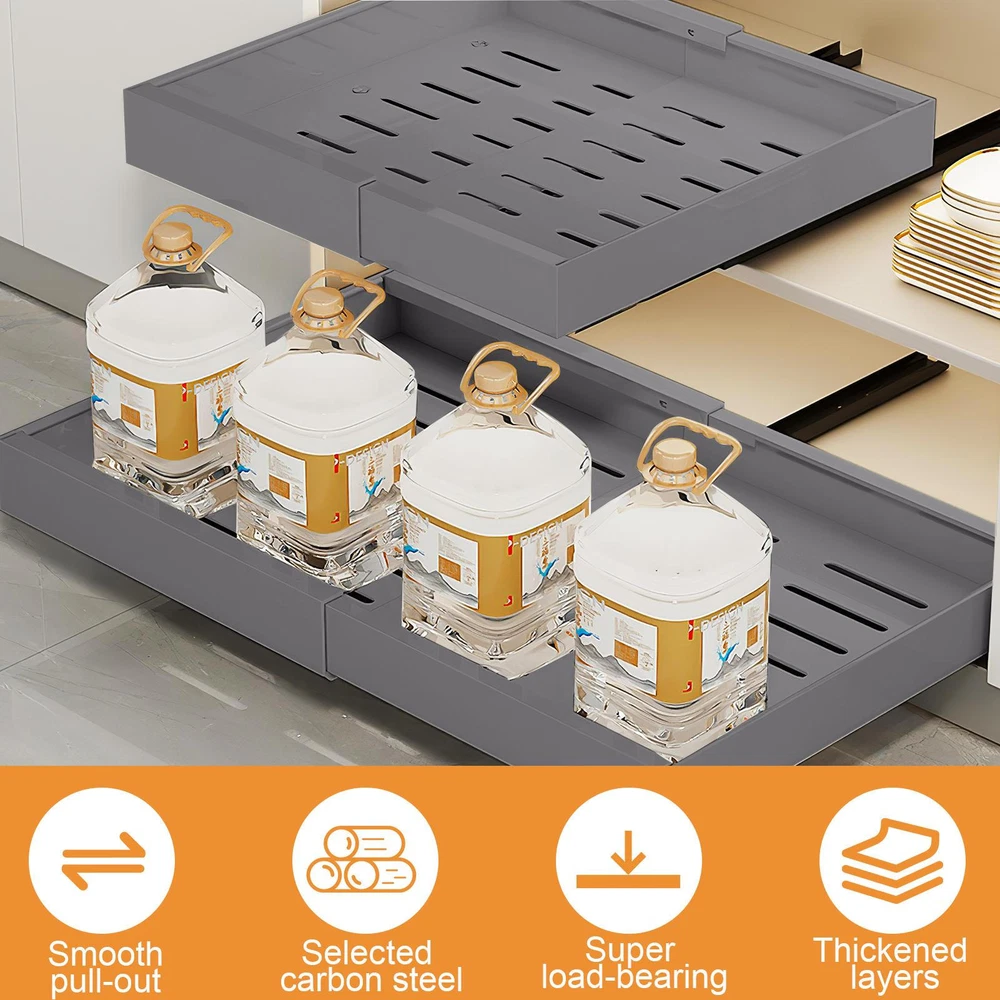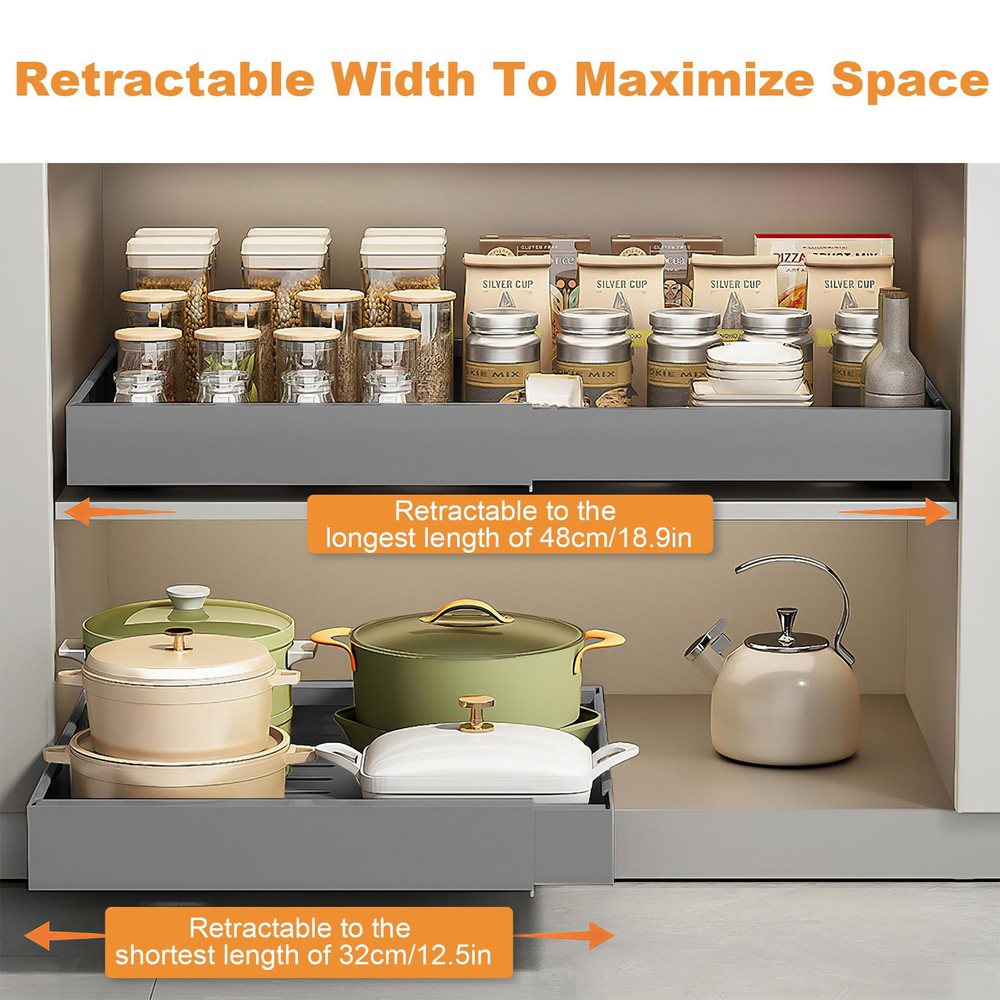 Pull Out Cabinet Organizer Expandable Drawer Storage Heavy Duty Slide out Drawer Bullet Points: Adjustable Kitchen Storage: Seamlessly expanding from 32 to 48cm in width, this 7cm high, 42cm deep slide-out drawer adapts to your cabinet dimensions, enhancing kitchen storage efficiency. Effortless Convenience: Raise your cabinet storage game with our Pull Out Cabinet Organizer featuring a damping slide rail for silent, smooth operation. Enjoy a pleasant user experience with the quiet and jam-free slide-out drawer, ensuring effortless accessibility every time. Robust Load-Bearing: Seamlessly store heavy kitchen must-haves with ease, as our Pull Out Cabinet Organizer, featuring a robust three-track system, supports up to 65 pounds. Easy to Mount: Effortlessly set up your Pull Out Cabinet Organizer with clear instructions and provided screws or adhesives. No tools required: quick and easy. More Functions: Transform your kitchen space with our innovative pull-out cabinet organizer. Effortlessly store and organize cookware, frying pans, cleaning products, canned goods, and kitchen gadgets with ease. Organize your cabinets with ease using our Pull Out Cabinet Organizer! Our expandable system fits a variety of cabinet sizes while the damping slide rail ensures smooth and quiet operation. With a high load-bearing capacity, this organizer can handle even your heaviest items. Specifications: Product name: Adjustable cabinet slide-out drawer Color: grey Product size: about 42x32x7cm/16.54x12.6x2.76 inches Width extension size: about 32-48cm/12.6-18.9 inches Weight: about 5000g Load bearing: about 30kg Fixed method: strong solid adhesive strip Applicable scenarios: kitchen cabinets, etc. Storage: cookware, frying pans, small kitchen utensils, cleaning products, canned food and other items, etc. Packing List: 2 * retractable drawers 4 * fixing strips 1 * instruction manual 2 * screws 1* tool Note: Due to different lighting and screen settings, the item color may be slightly different from the picture. Due to different manual measurements, please allow a 1-2cm difference in size. We accept PayPal payment,PayPal Credit,Credit card or debit card and so on. Payment should be completed within 4 (Four) days of auction closing. Or unpaid dispute will be filed for closing auction. We will leave a positive feedback immediately after payment is received. We appreciate a positive feedback as much as you do. If for some reason there is any issue with the purchase, please contact us prior to leaving feedback, we will be glad to work together and provide a satisfying solution. 1. We ship to your eBay address. Each package will be shipped via FedEx or UPS 2-8 business days with tracking number 2. Please check your shipping address carefully before checkout, it can't be changed if order completed. 3. Shipping within 1 business days once payment completed. Orders placed on weekend will be delay 1-2 days. 4. Please allow 6 business days for delivery to any destinations. 5. As a buyer, it is your duty to pay the tax when you make an order from abroad. Our price does not include taxes, VAT, or other hidden charges. 1. We maintain high standards of excellence FIVE STAR and strive for 100% customer satisfaction! 2. Positive Feedback is very important to us. We hope that you contact us immediately BEFORE you give us neutral or negative feedback, so that we can satisfactorily address your concerns. 3. We promise to offer the best price and high quality products. 1. If you have any questions, please send a ebay message. 2. We will reply within 48 hours of your email. Weekend will be delayed a bit.