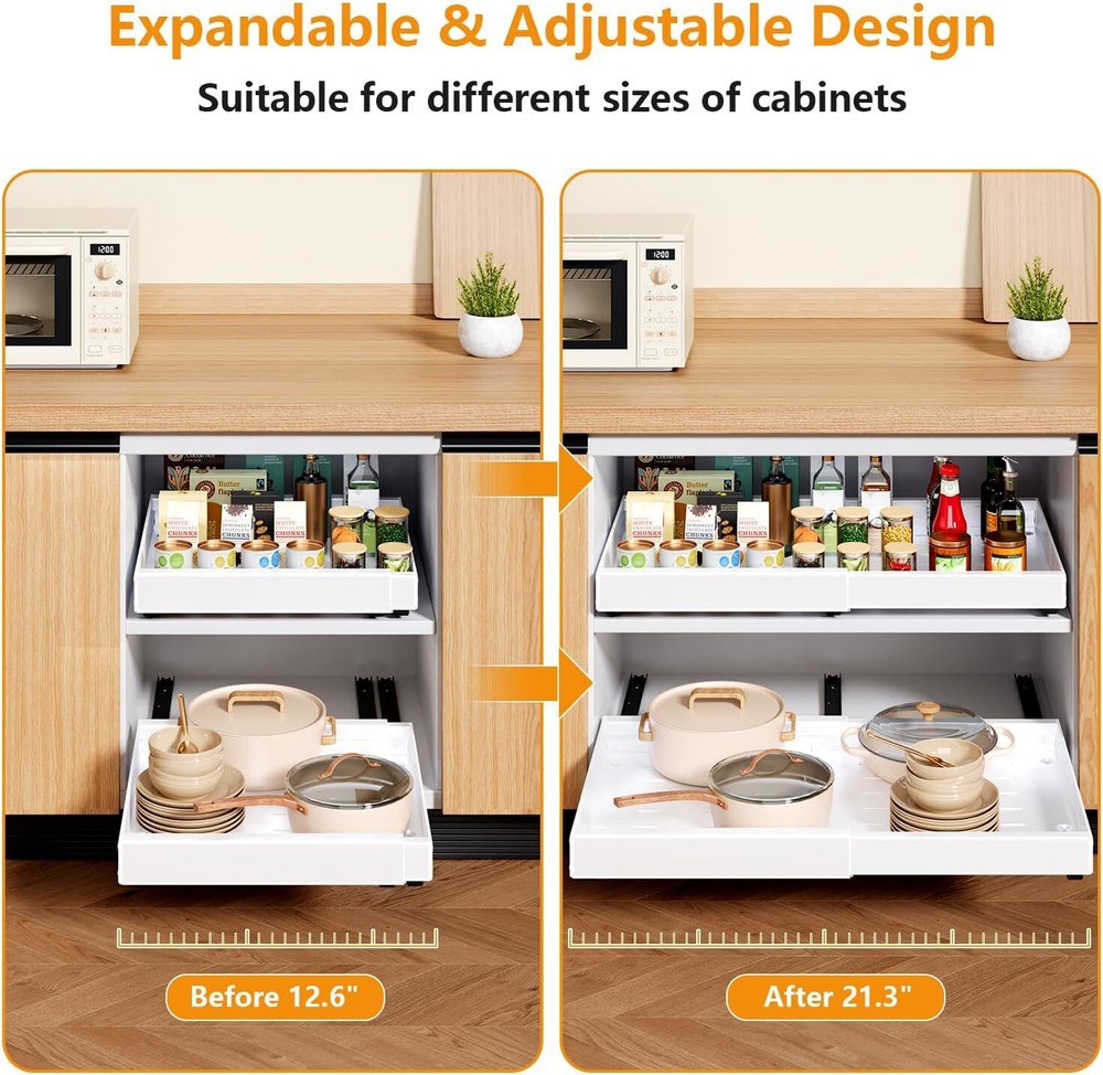 Pull out Cabinet Organizer 21" Deep Heavy Duty Expandable12.6"-21" Slide out for